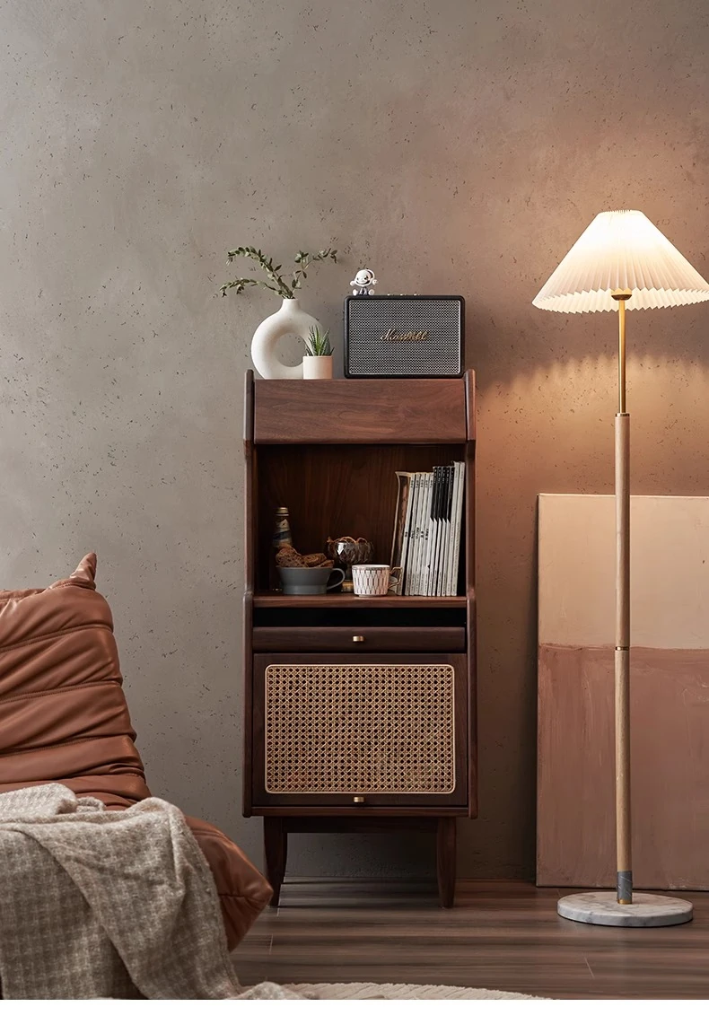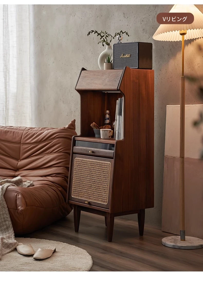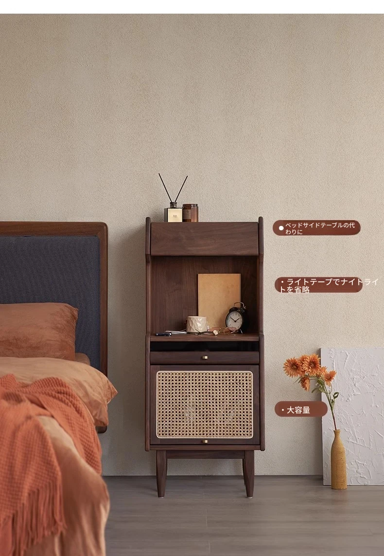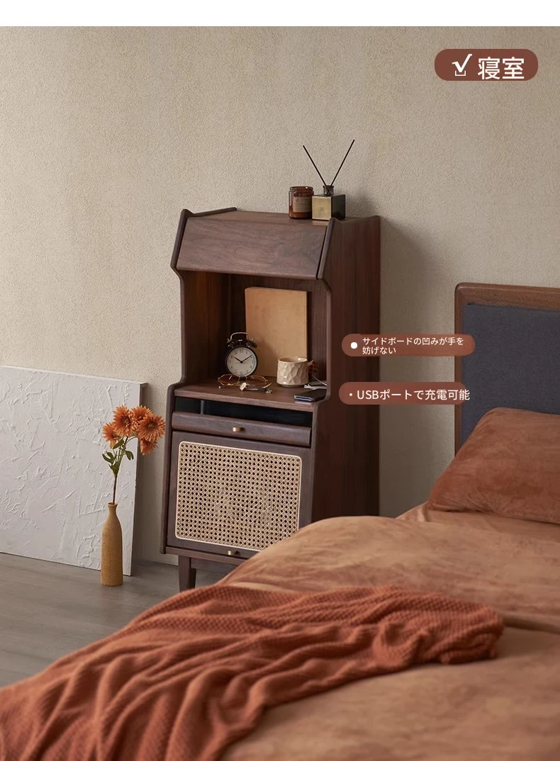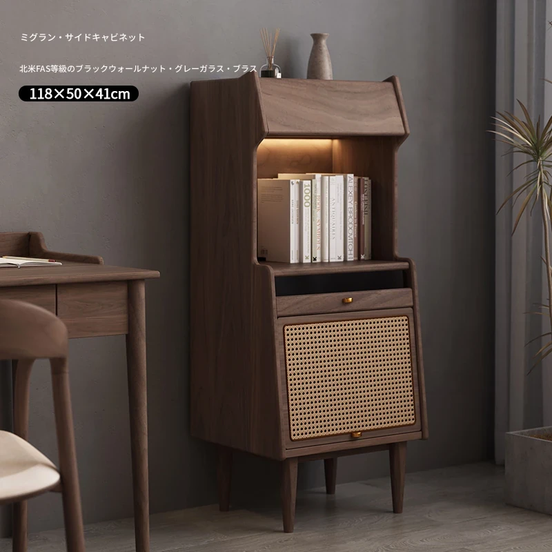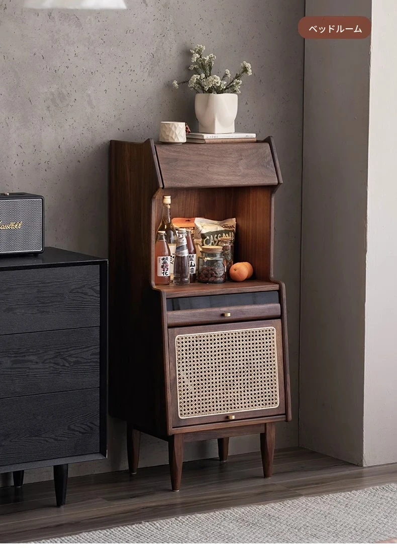 妙梵「光を探すサイドキャビネット」北米産ブラックウォールナットの無垢材使用!リビングのソファ脇やティータイムに最適、移動可能なダイニング収納キャビネットでおしゃれな空間を演出!