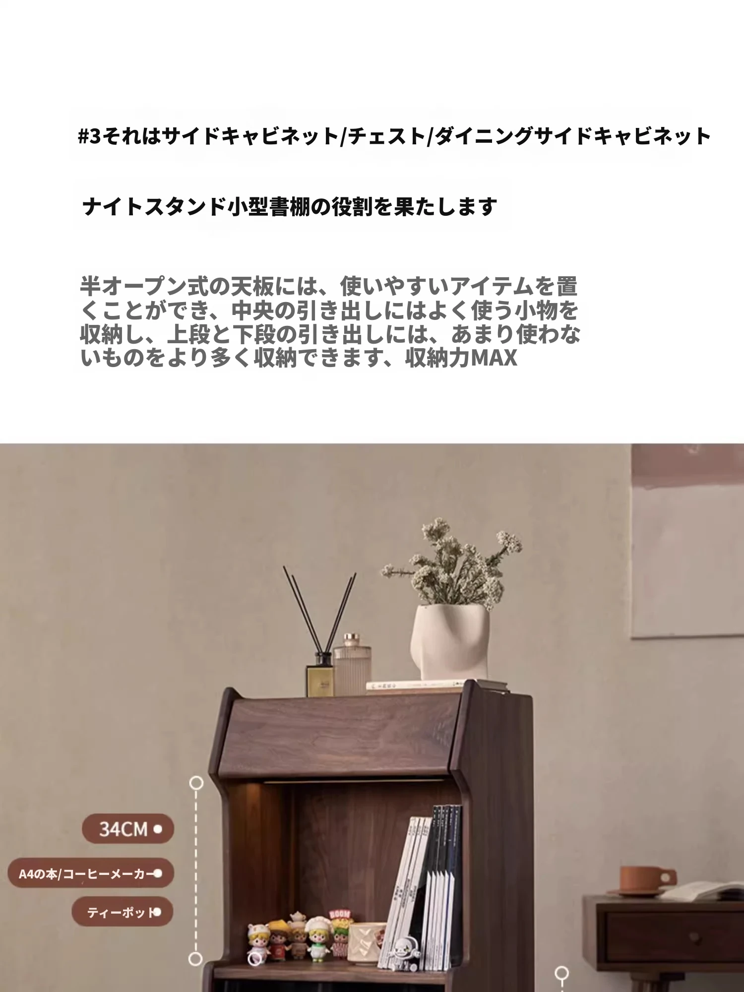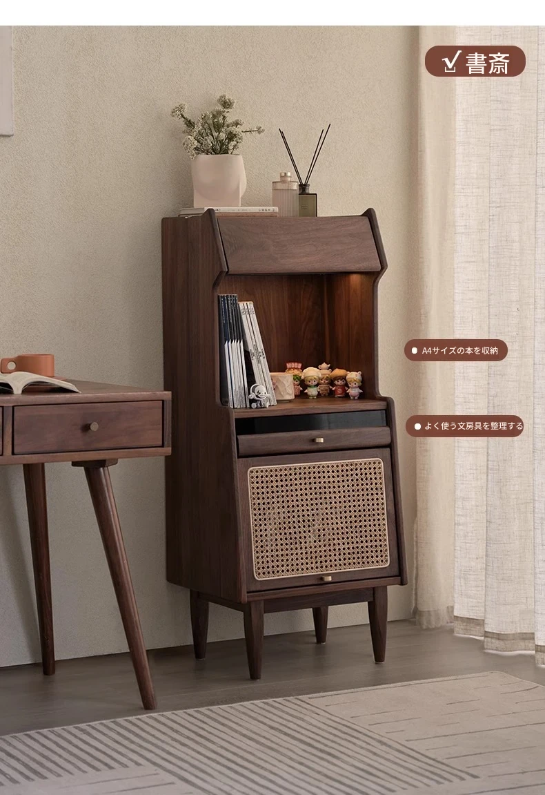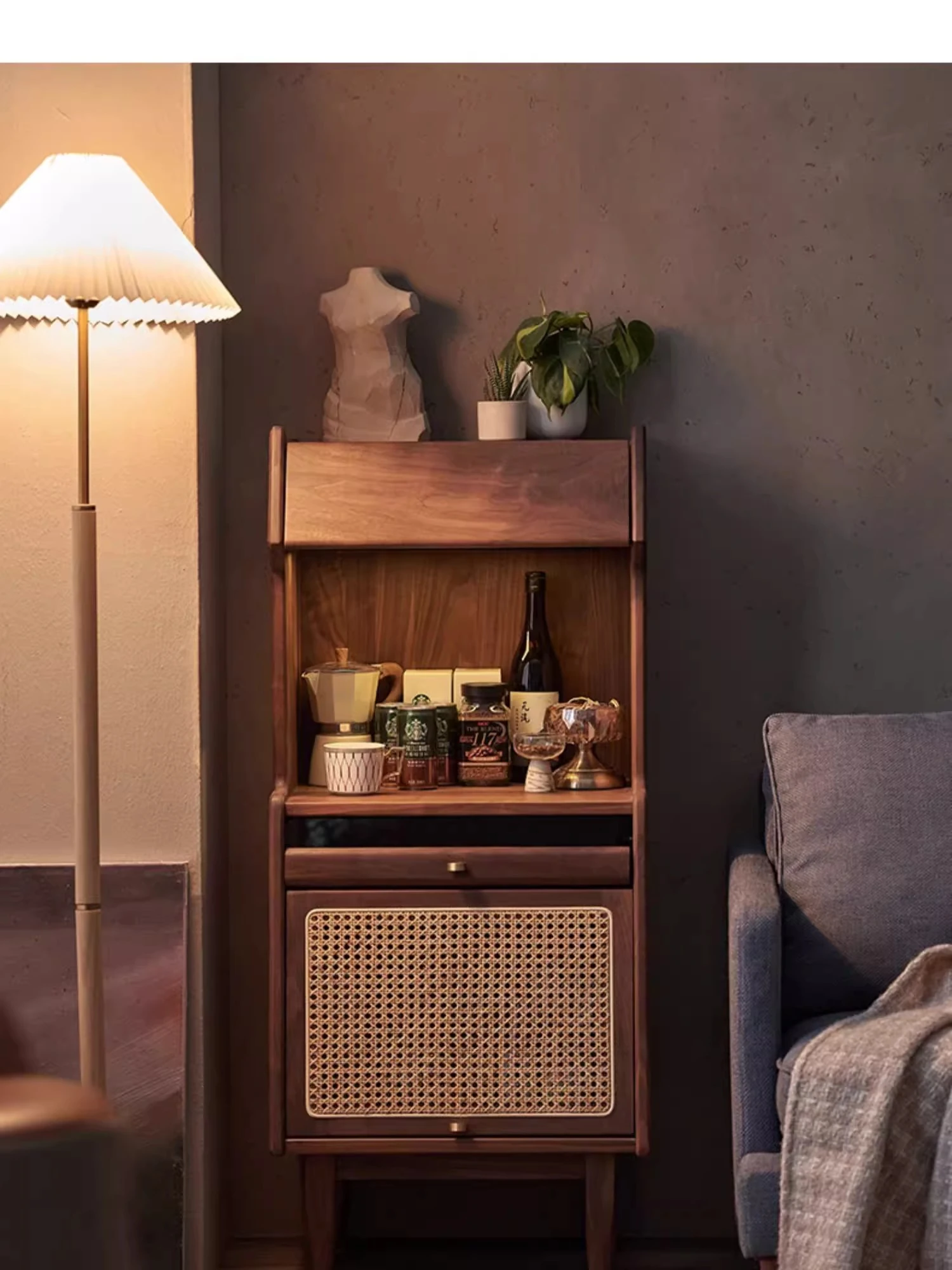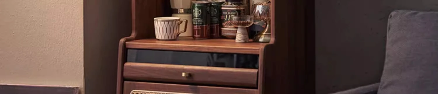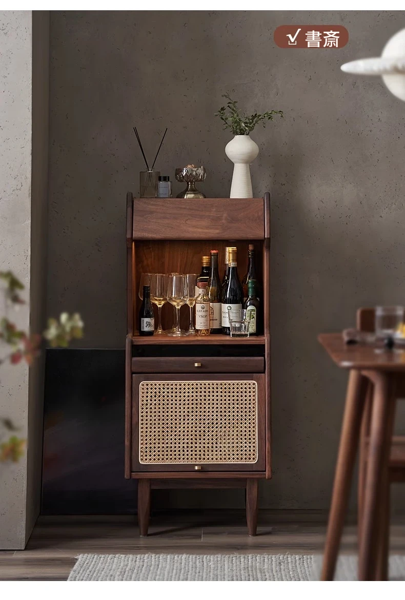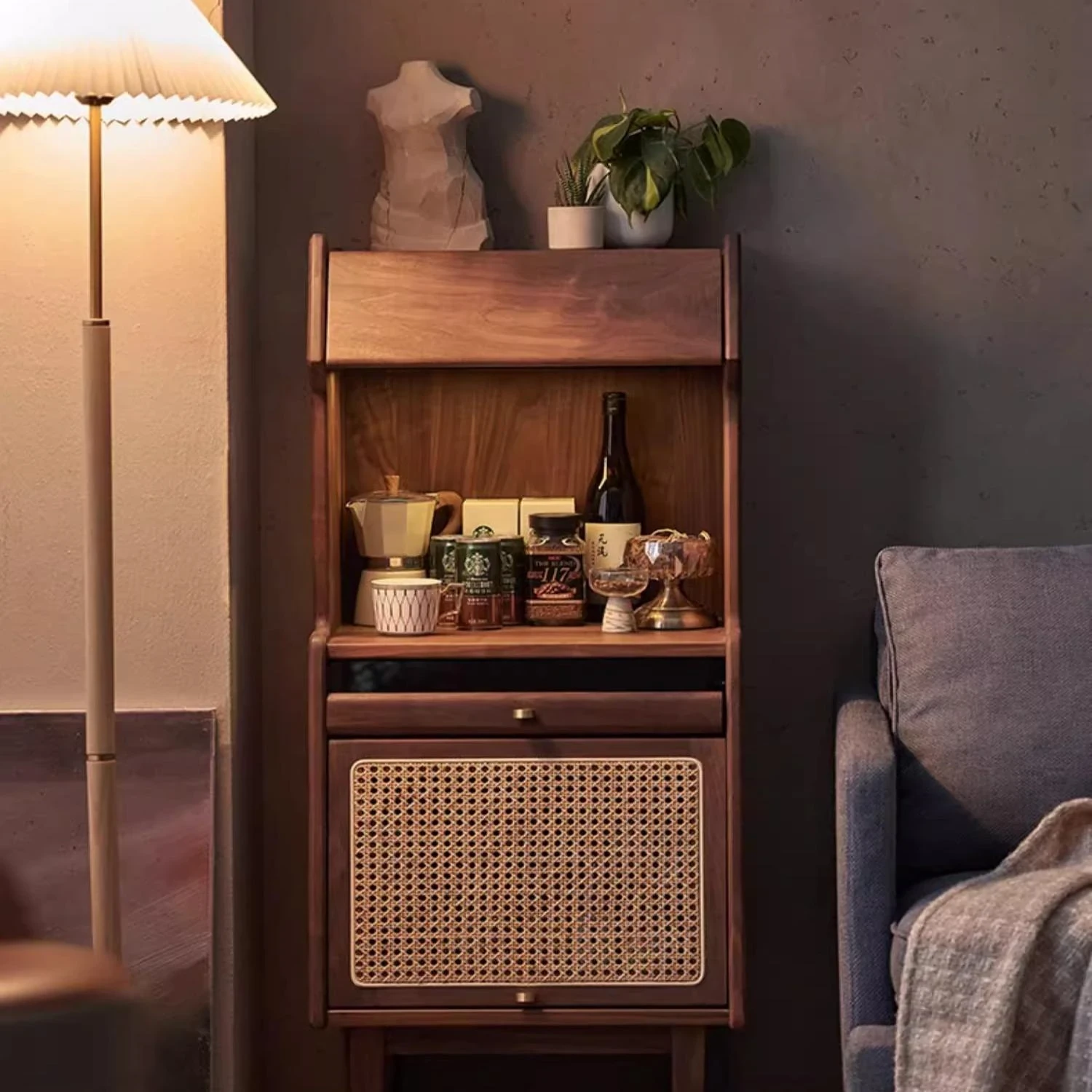 妙梵「光を探すサイドキャビネット」北米産ブラックウォールナットの無垢材使用!リビングのソファ脇やティータイムに最適、移動可能なダイニング収納キャビネットでおしゃれな空間を演出!