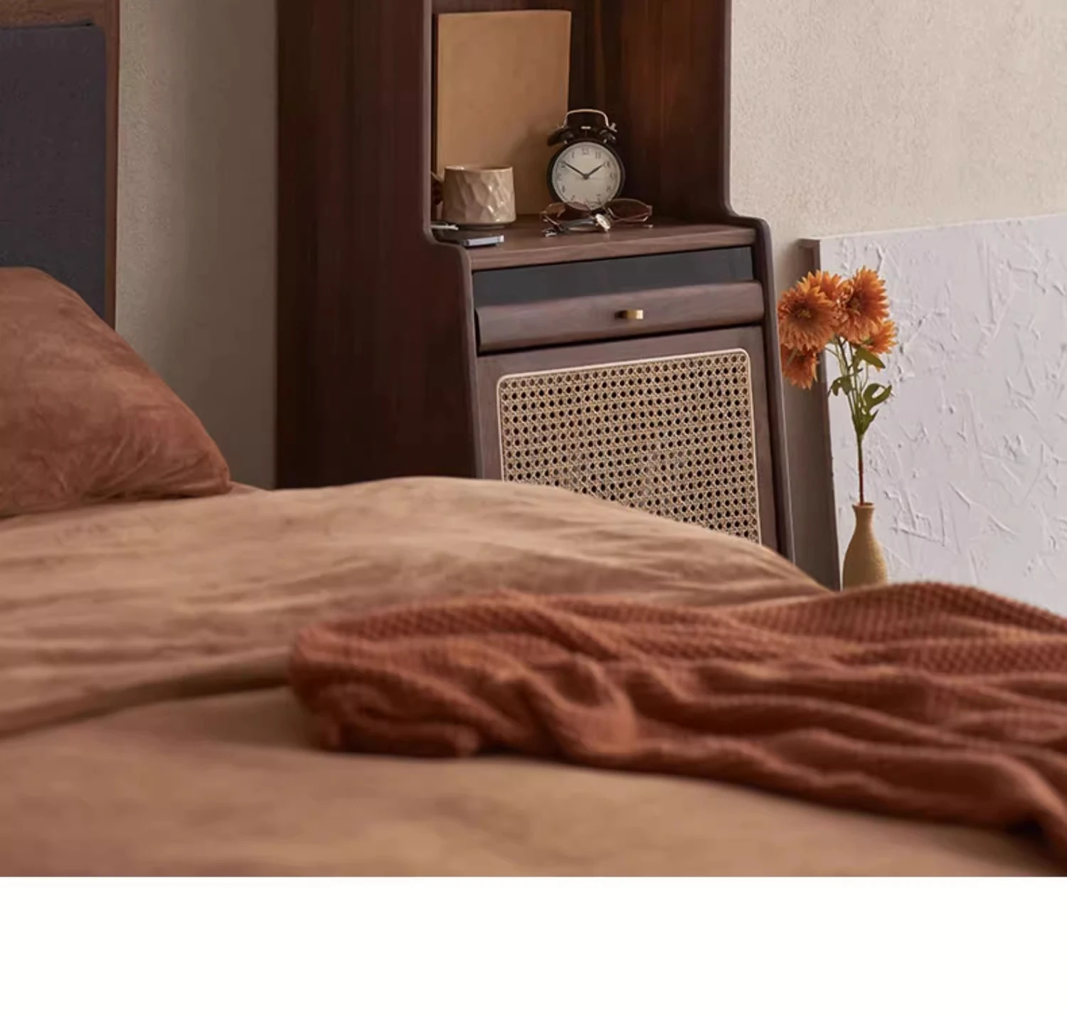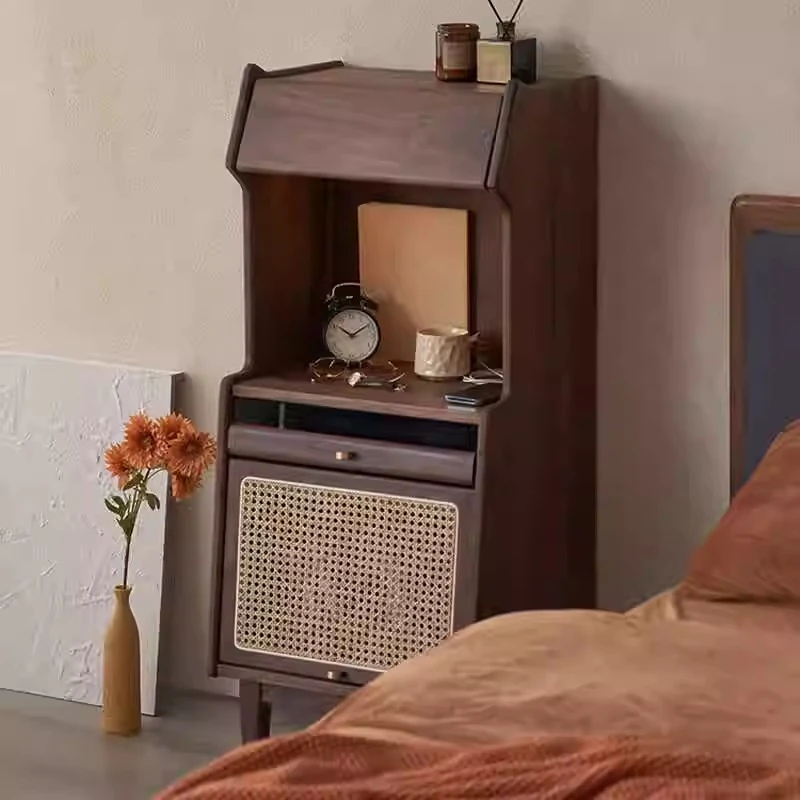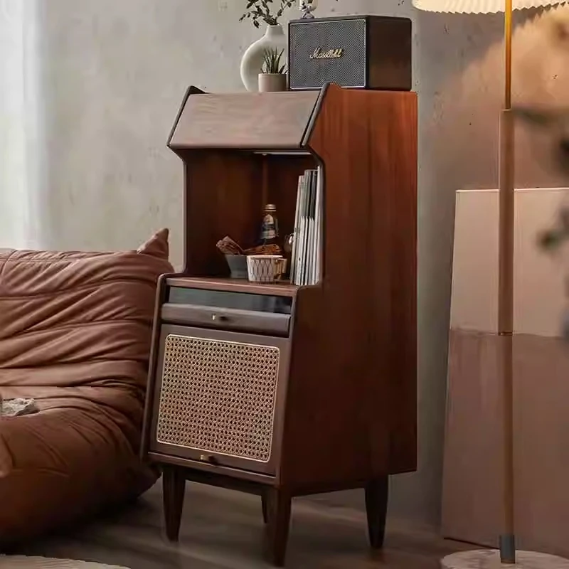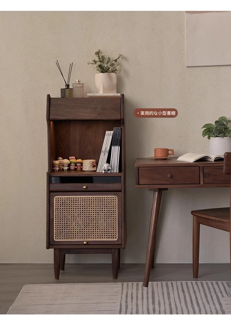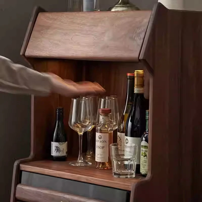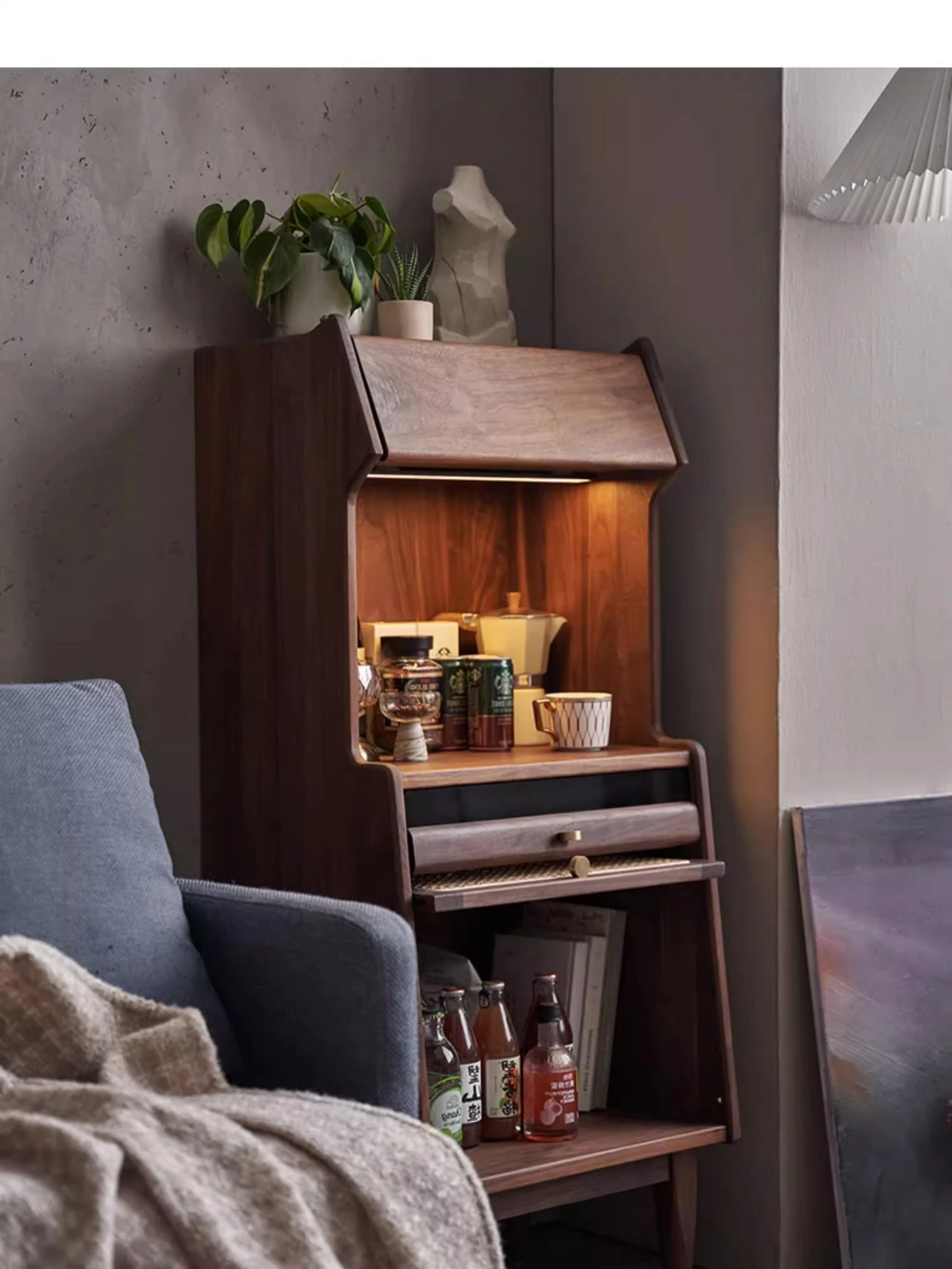 妙梵「光を探すサイドキャビネット」北米産ブラックウォールナットの無垢材使用!リビングのソファ脇やティータイムに最適、移動可能なダイニング収納キャビネットでおしゃれな空間を演出!