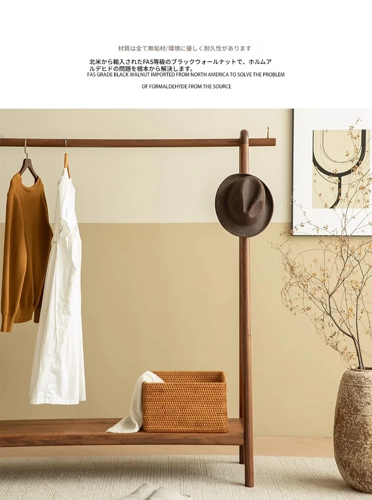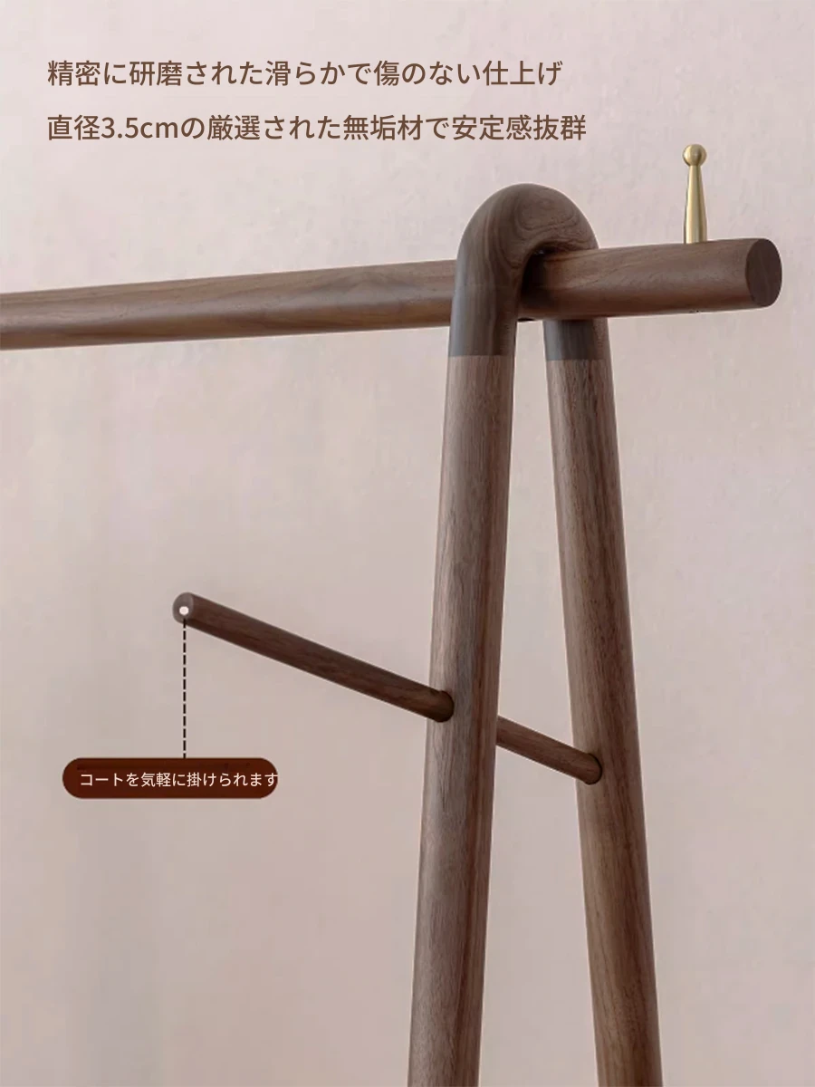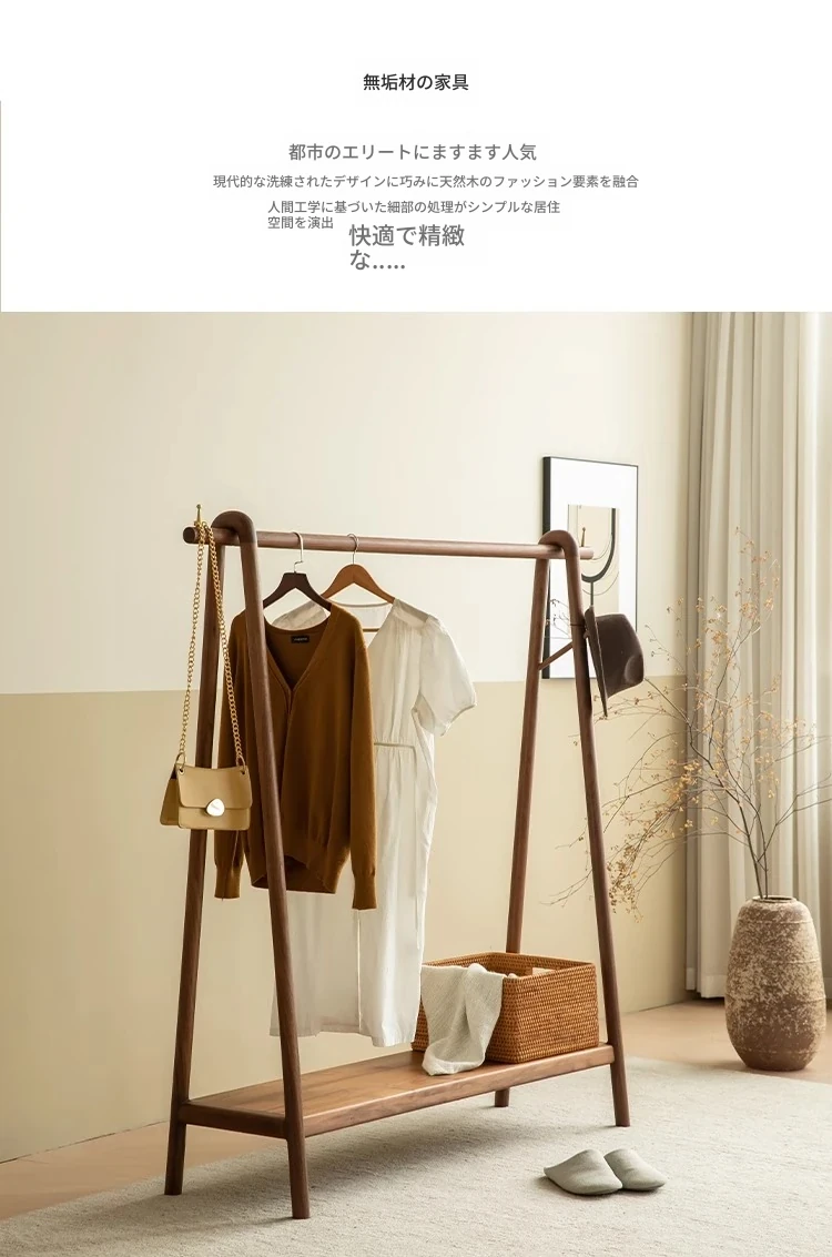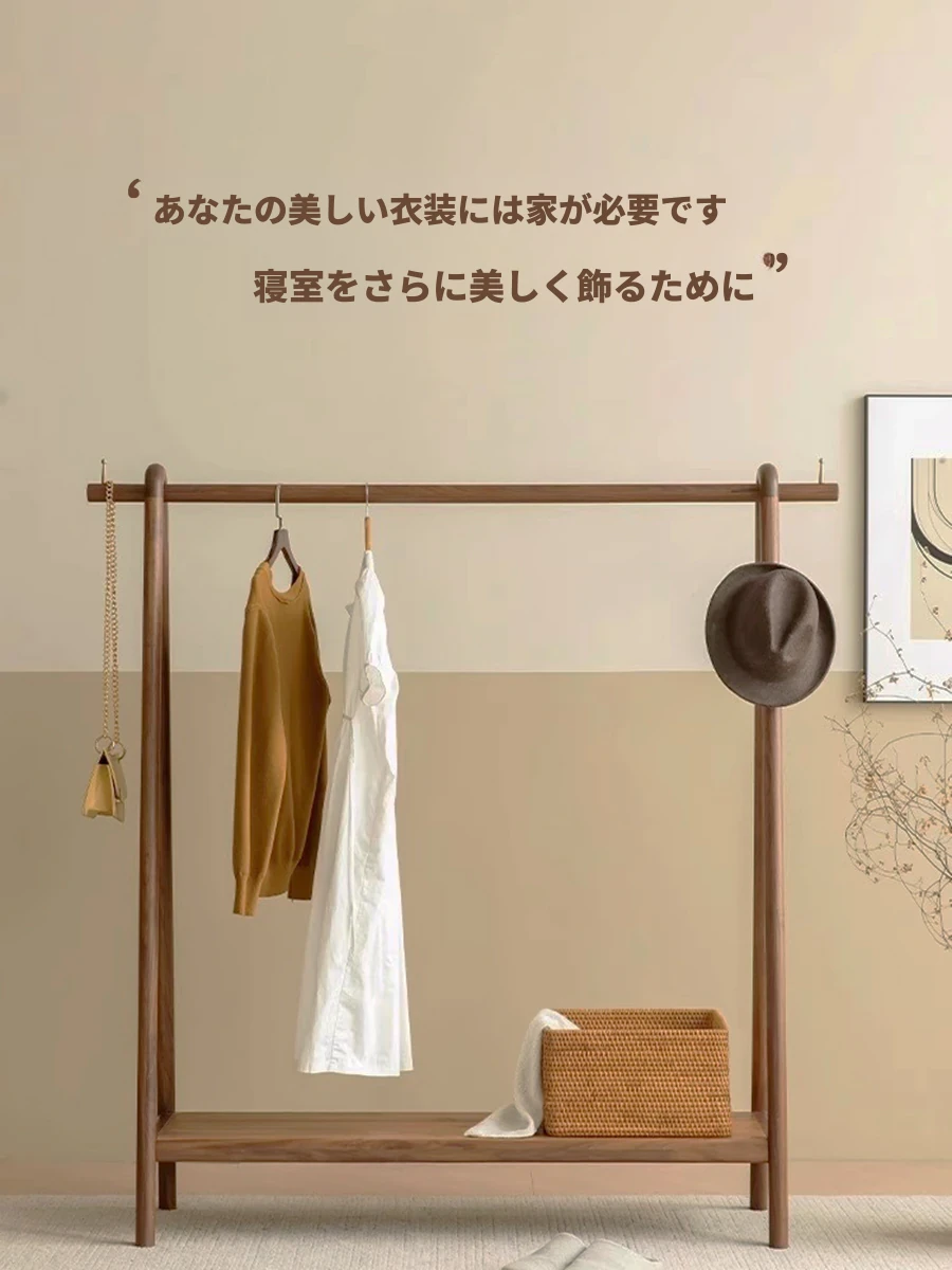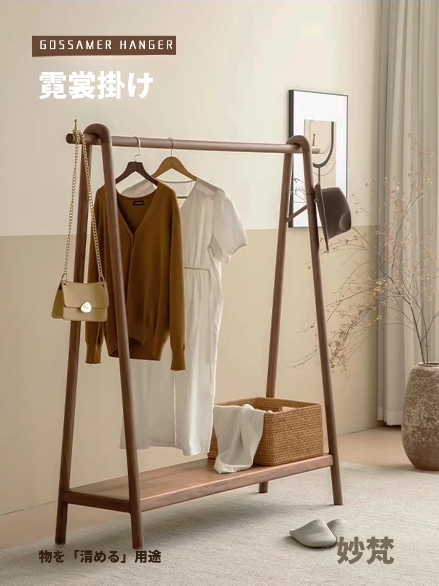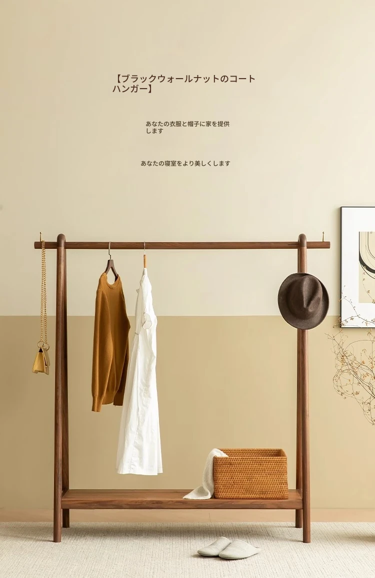 妙梵「霓裳架」北米産ブラックウォールナット無垢材のスタイリッシュな室内ハンガーラック。高級感あふれるデザインで、寝室やリビングに最適!あなたのスペースを美しく彩ります。