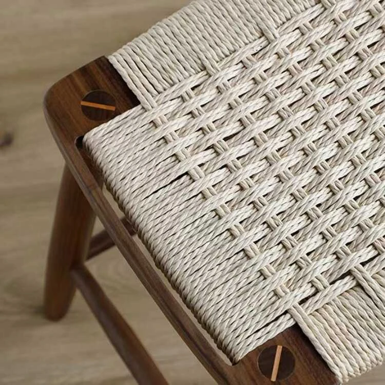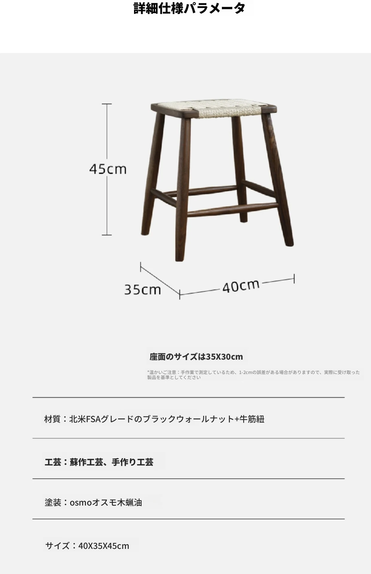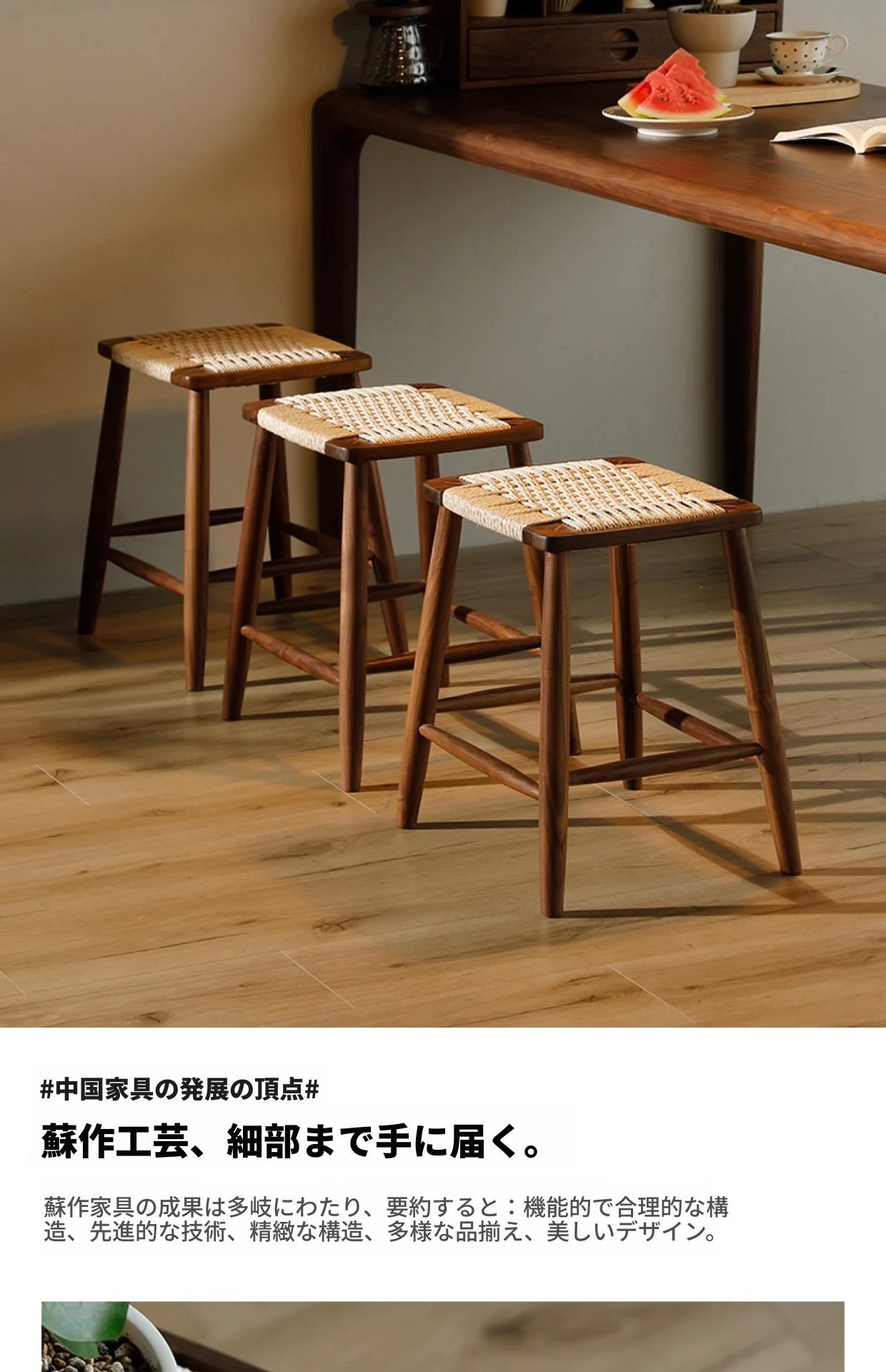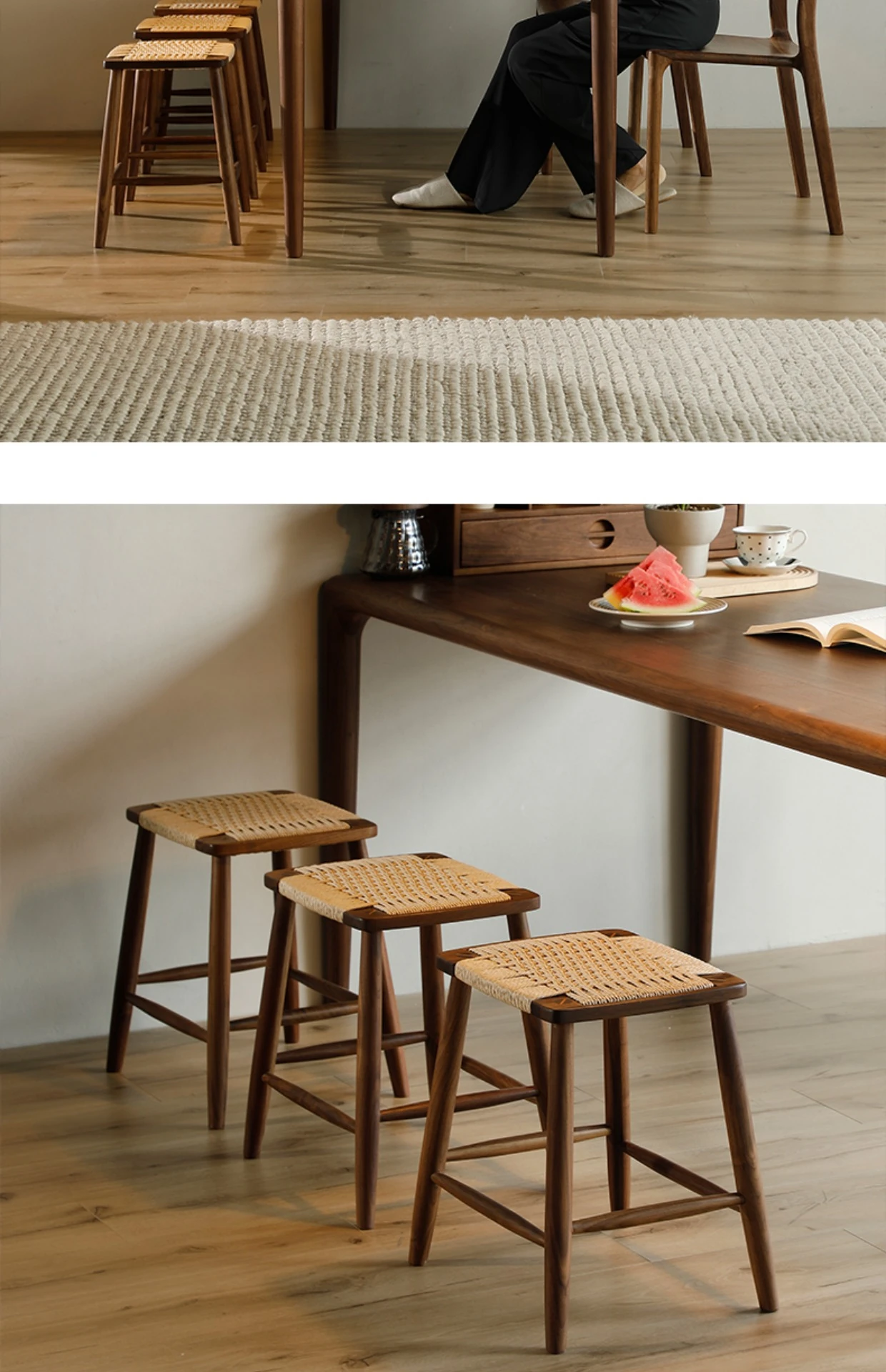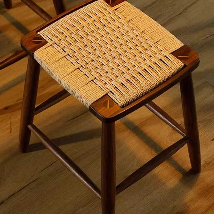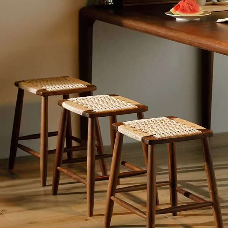 妙梵「桃源座」北米産ブラックウォールナットのシンプルな編み込み四角スツール - リアルウッドの化粧台スツール、家庭用小型スツールでおしゃれな空間を演出!