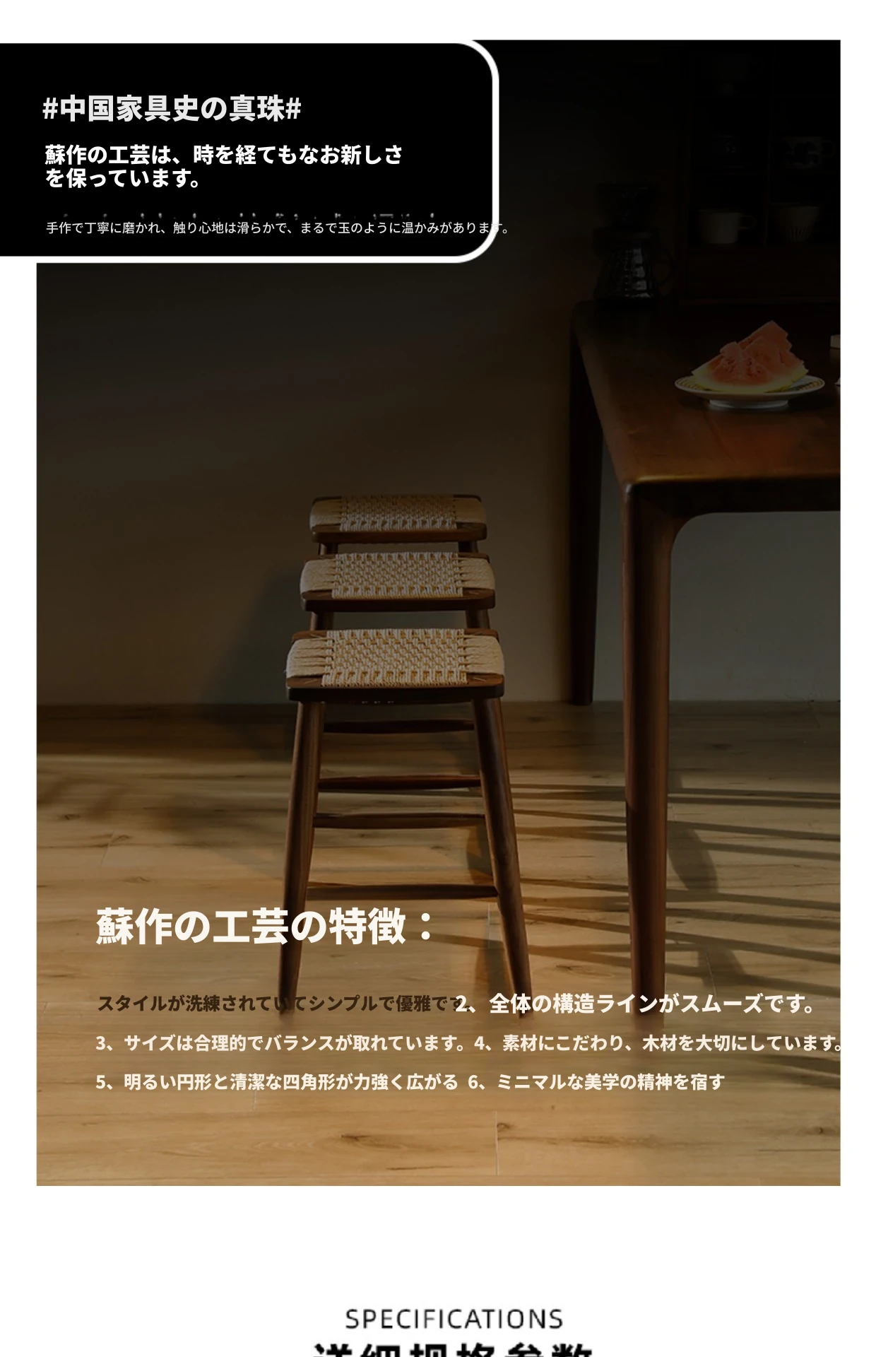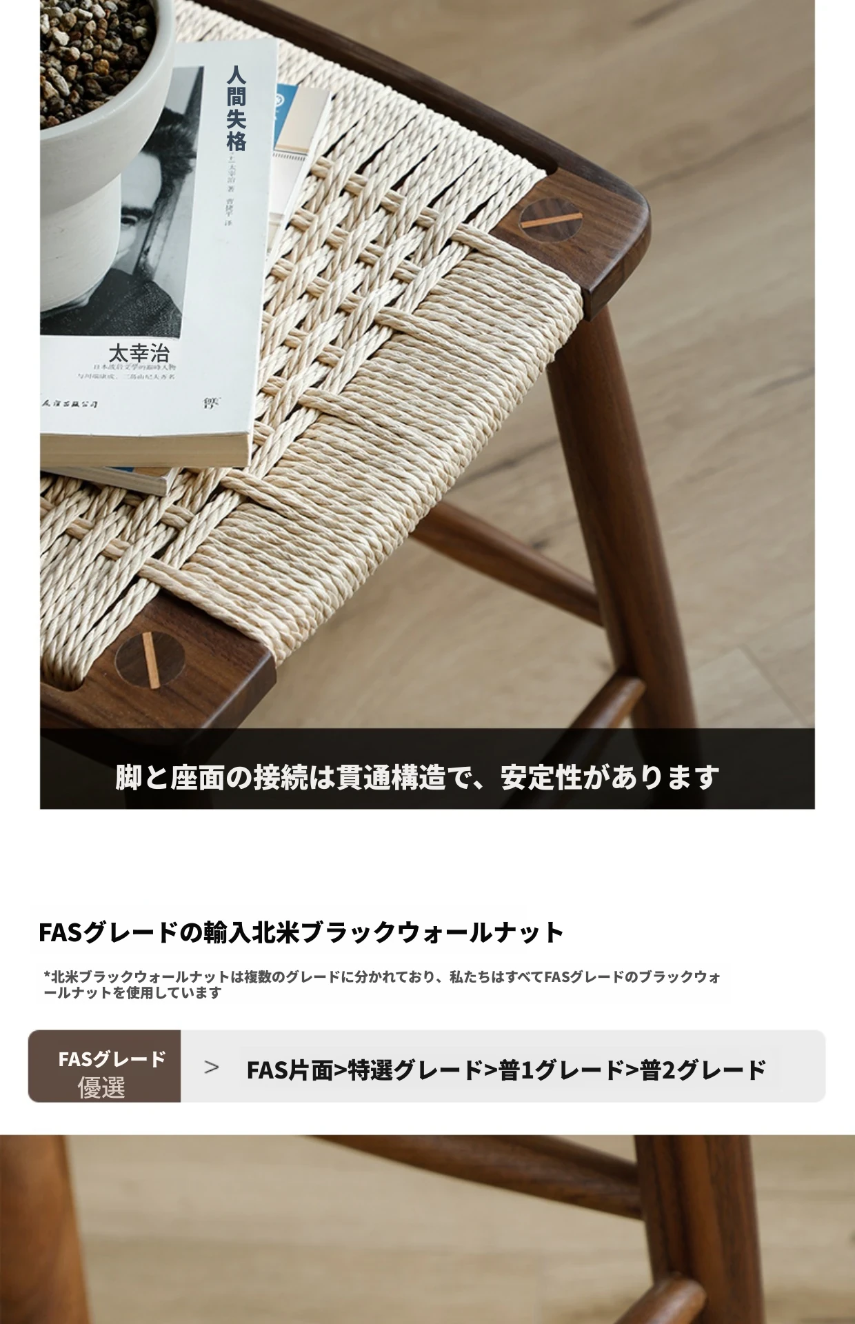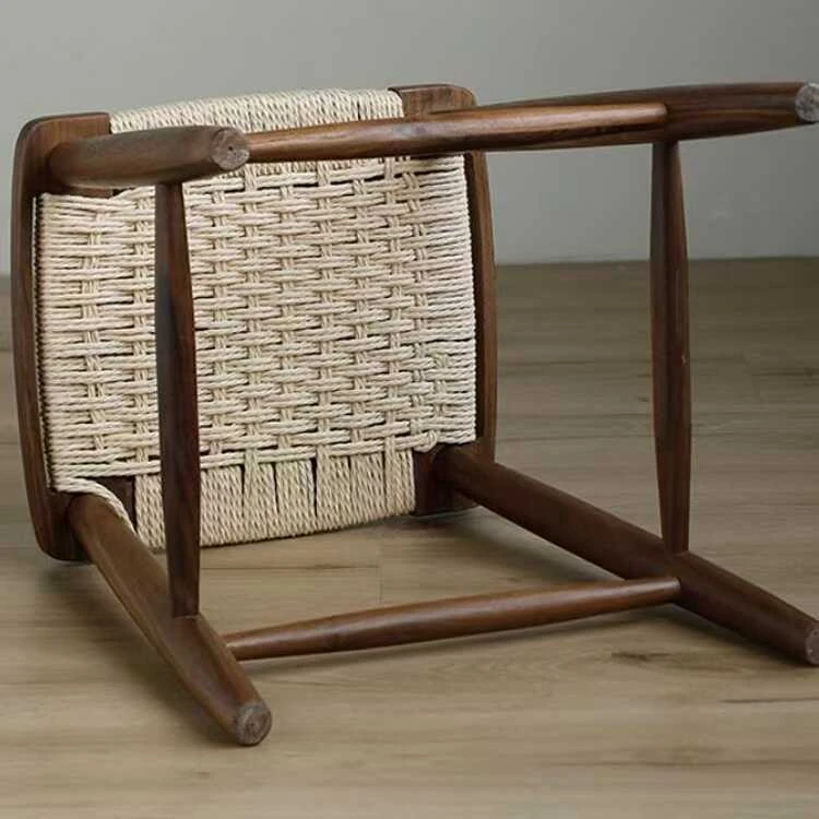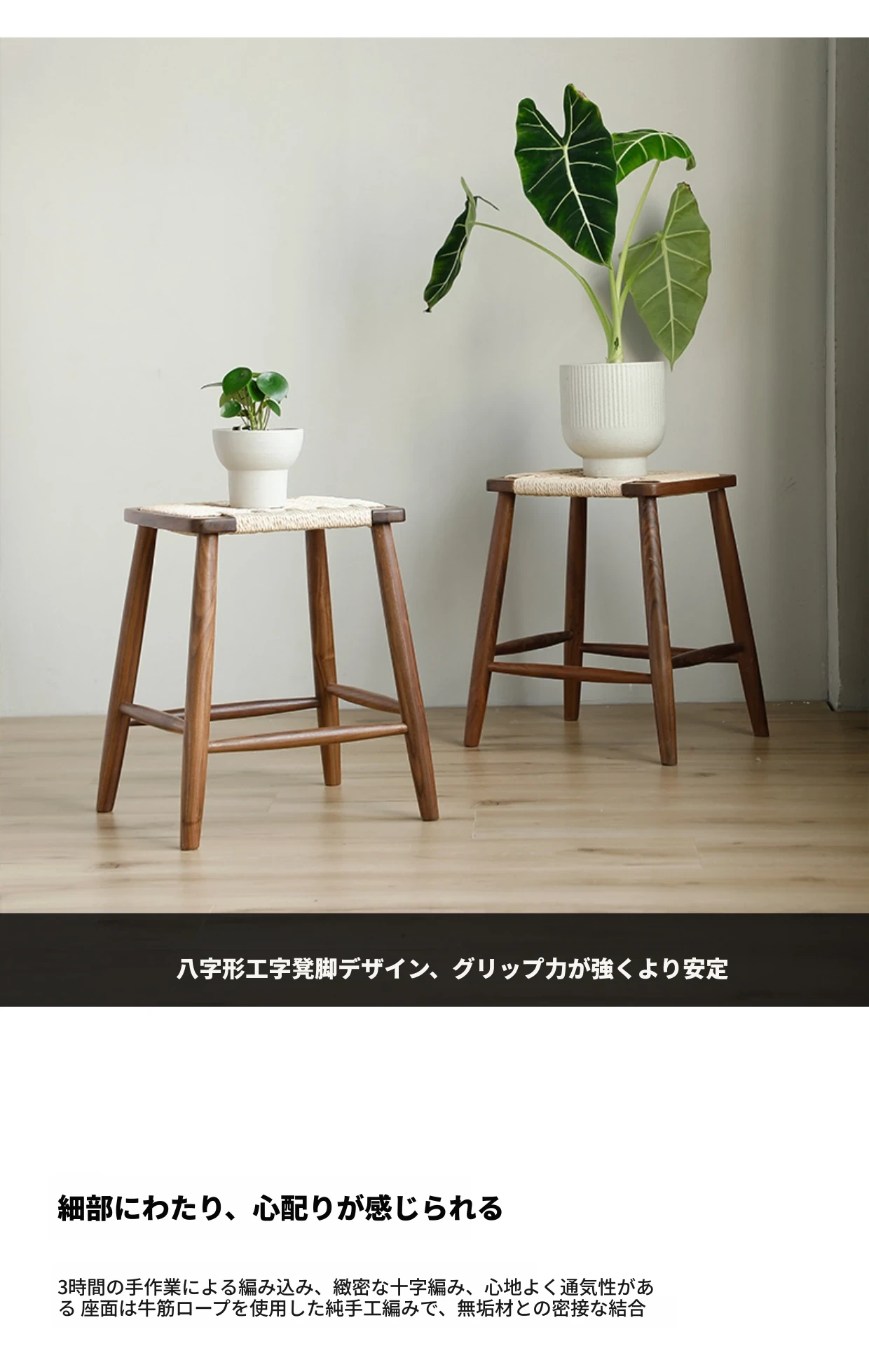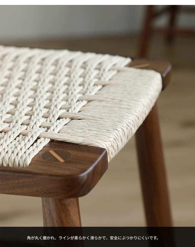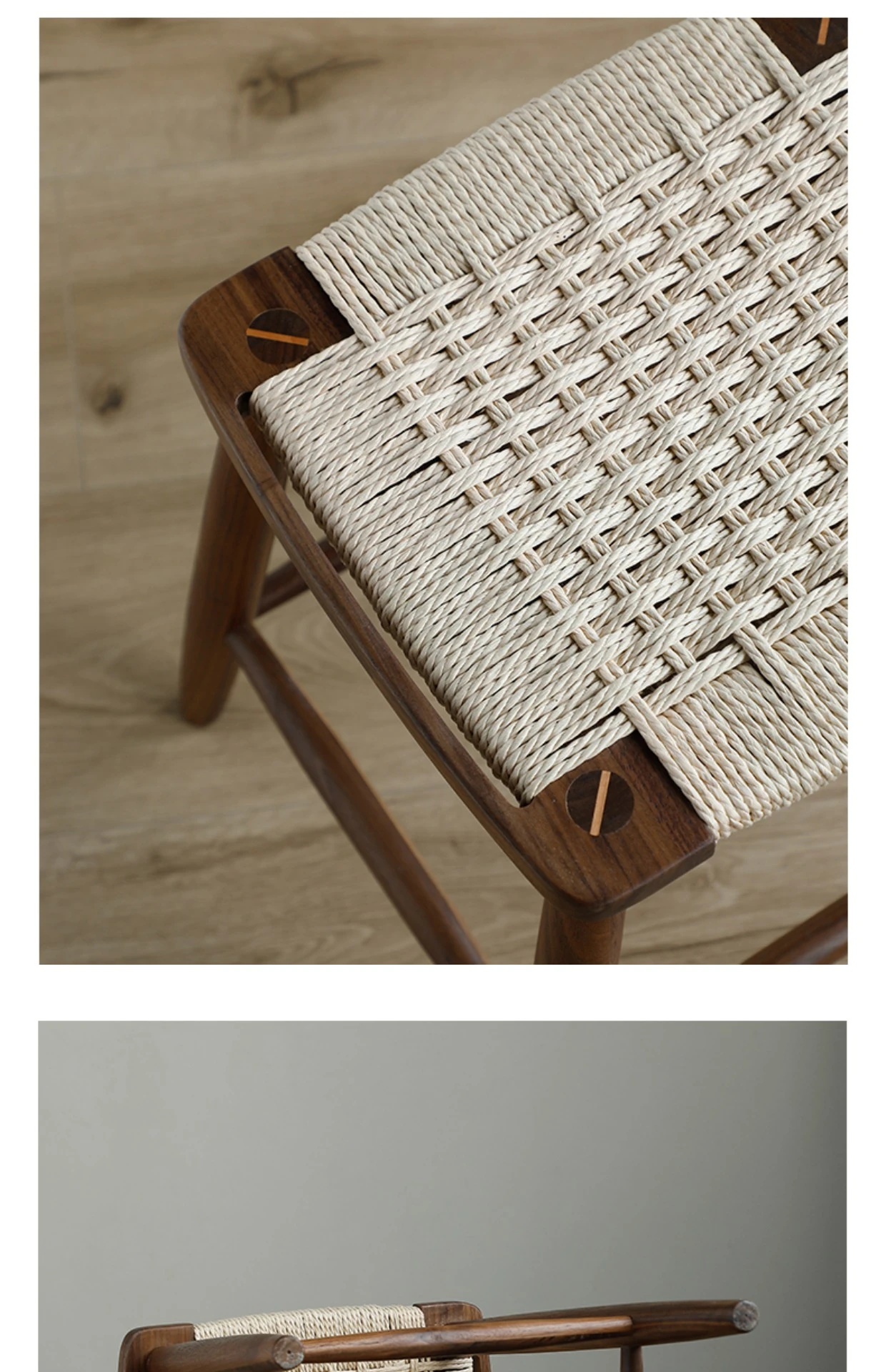 妙梵「桃源座」北米産ブラックウォールナットのシンプルな編み込み四角スツール - リアルウッドの化粧台スツール、家庭用小型スツールでおしゃれな空間を演出!