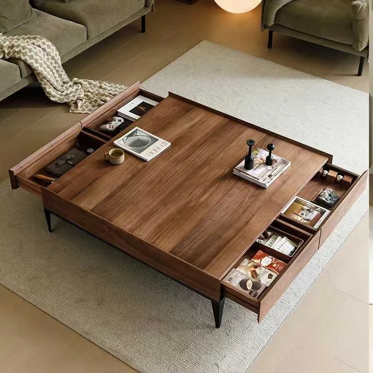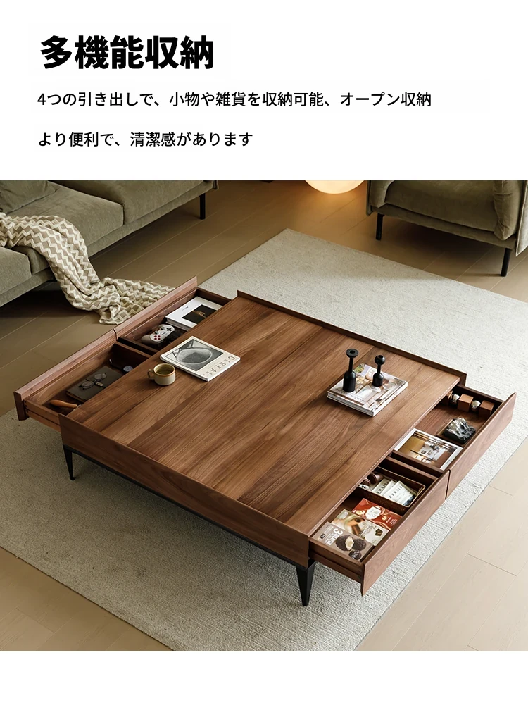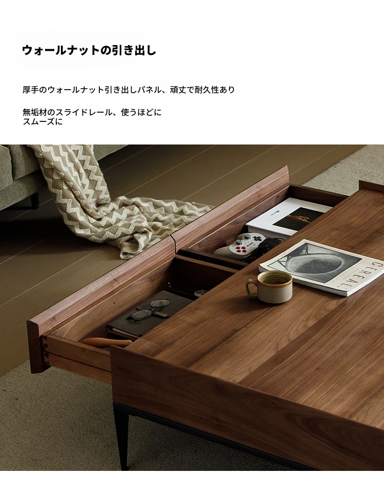 妙梵「栖梧柜」北米産ブラックウォールナット製シンプルモダンなリビング収納テーブル - 高級感あふれる実木製で、おしゃれな空間を演出。快適なリビングライフをサポートします!