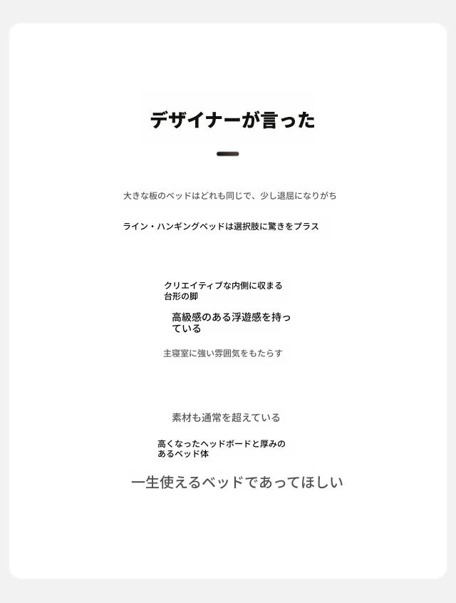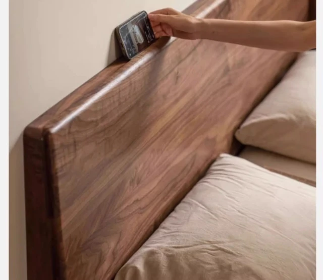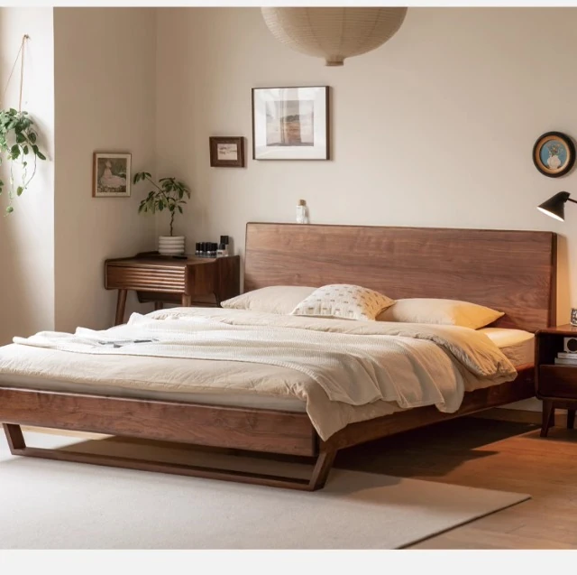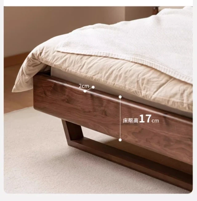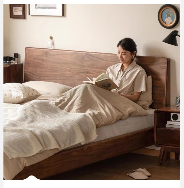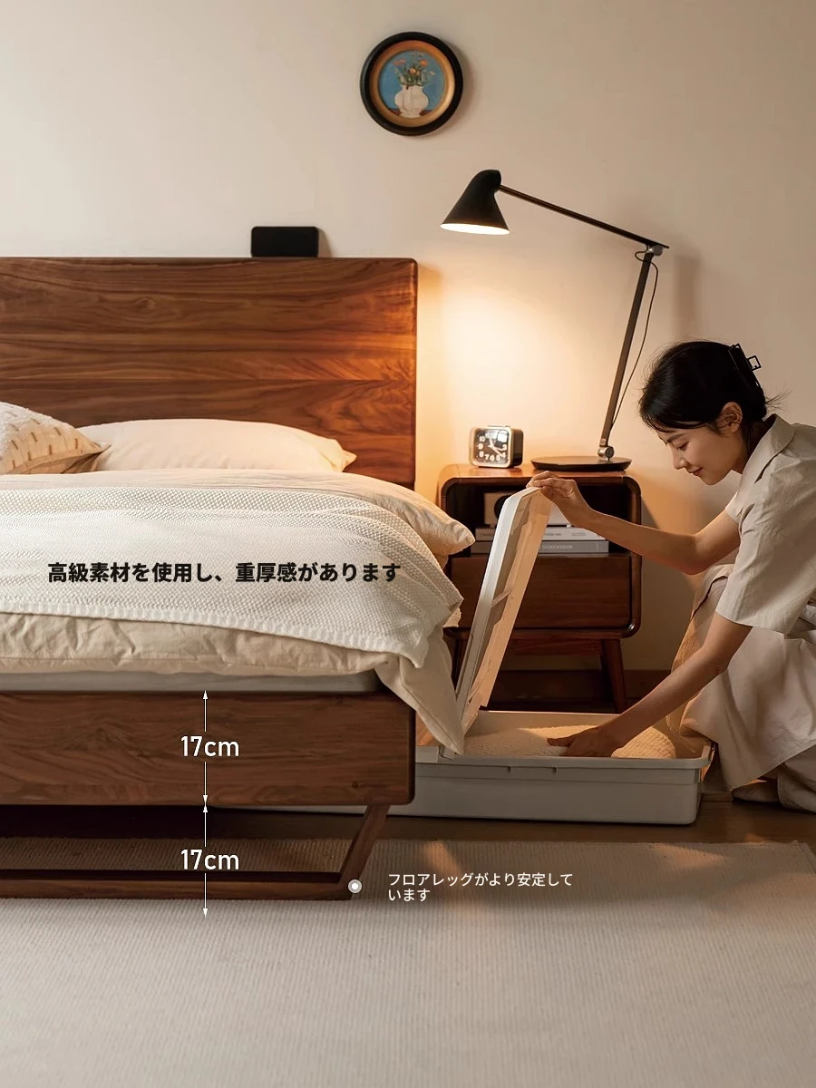 妙梵「ライン」北米ブラックウォールナット無垢材使用の高級全浮遊式ベッド、1.8mダブルベッド、洗練されたデザインで贅沢な空間を演出!2025年新作