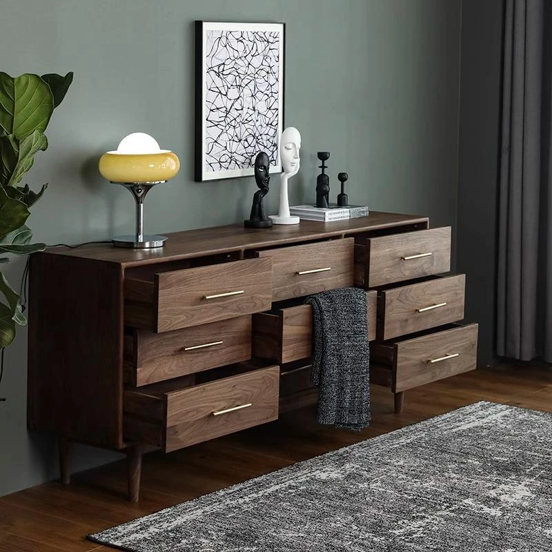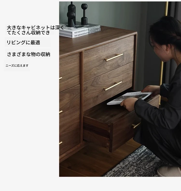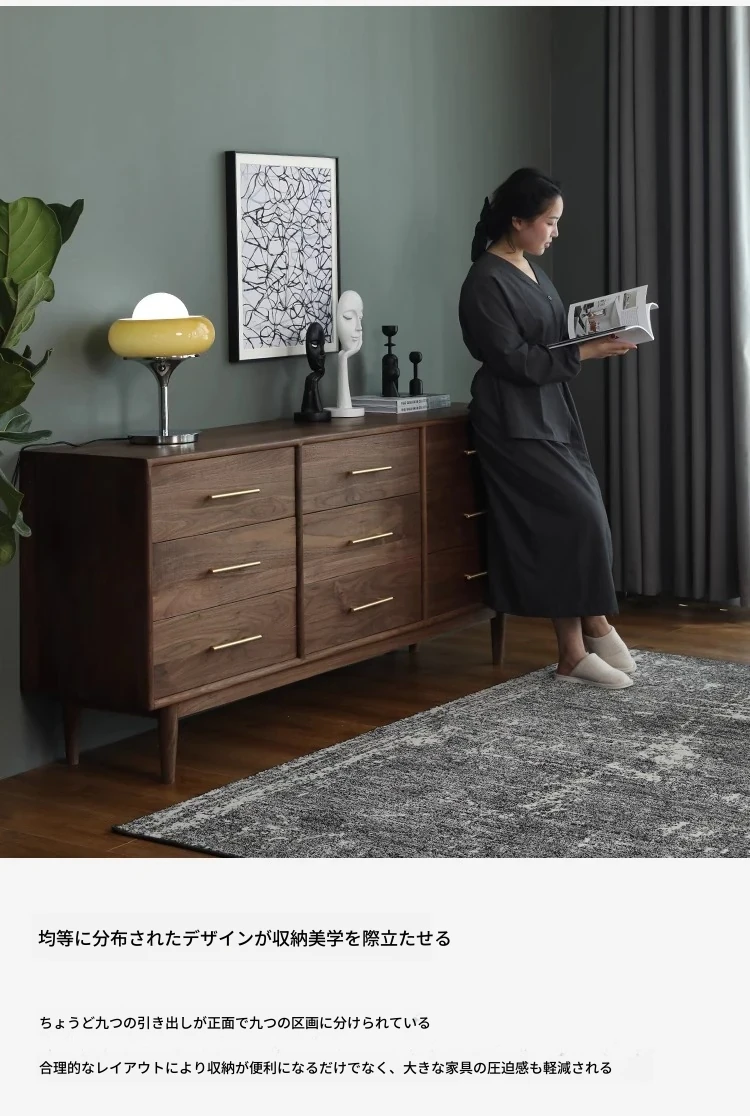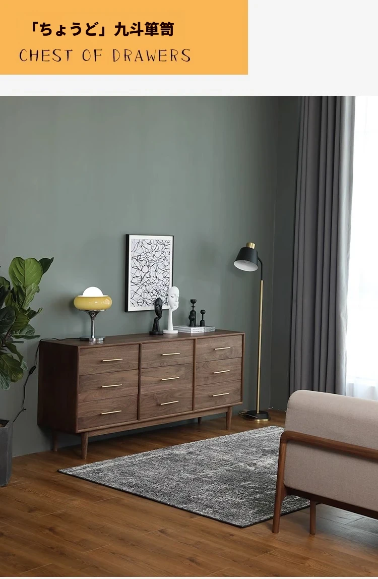 妙梵「拾贝箱」北米産ブラックウォールナット無垢材のモダンシンプルな引き出しキャビネット - リビングやダイニングに最適な収納家具!洗練されたデザインでお部屋をおしゃれに演出します。