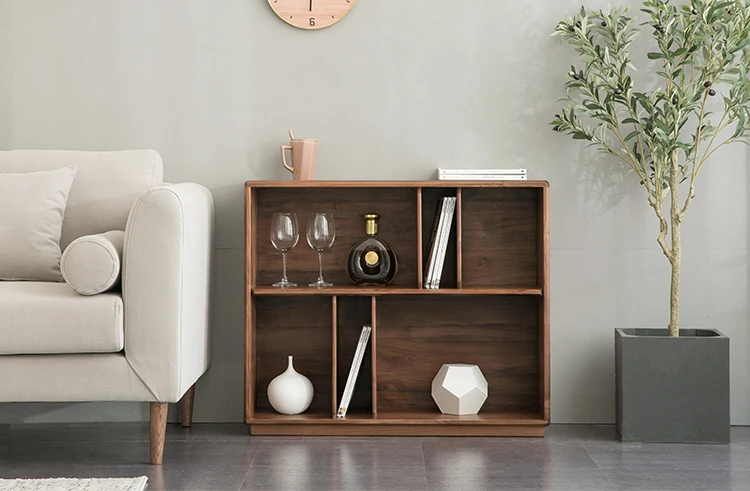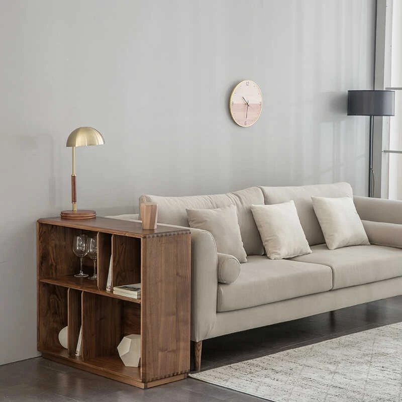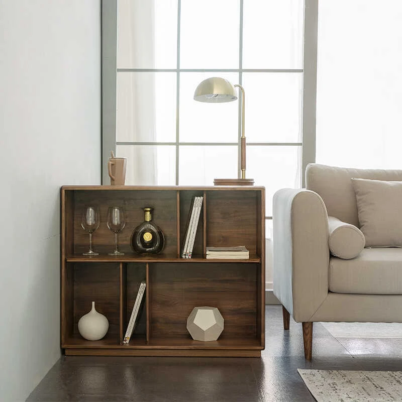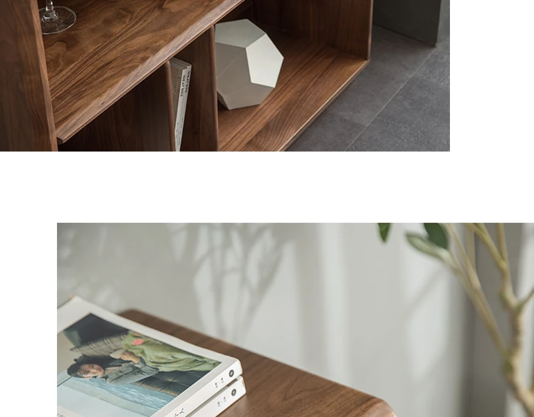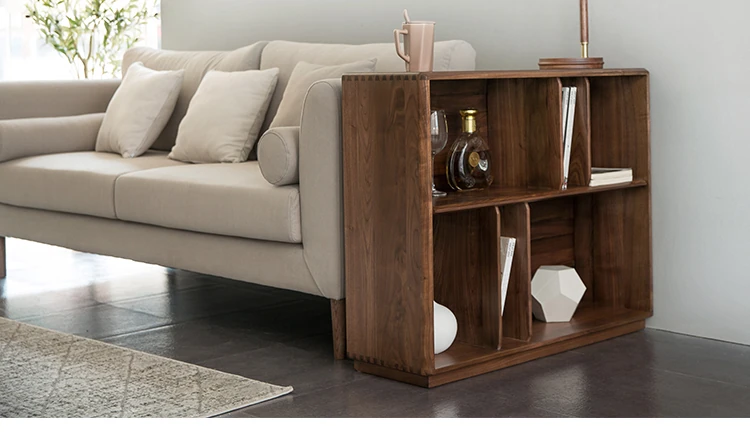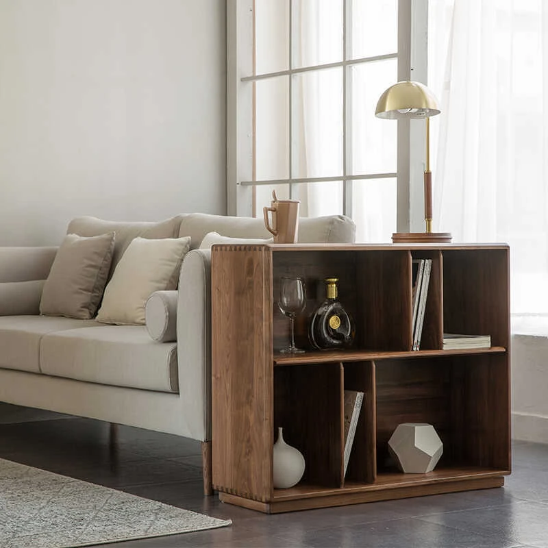 妙梵「リュウウキャビネット」北米ブラックウォールナット製ソファサイドキャビネット - おしゃれなリビングのためのマガジンラック&フロアブックシェルフ!収納力抜群で、インテリアを引き立てるデザインです。