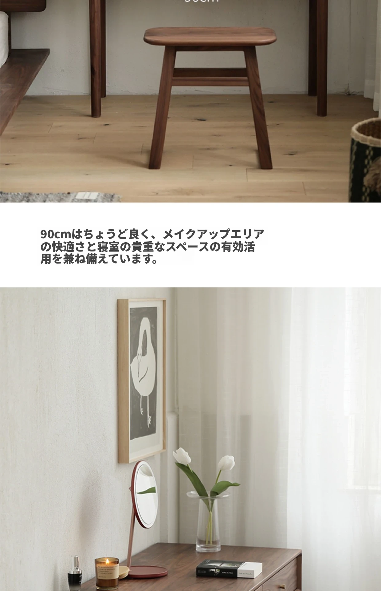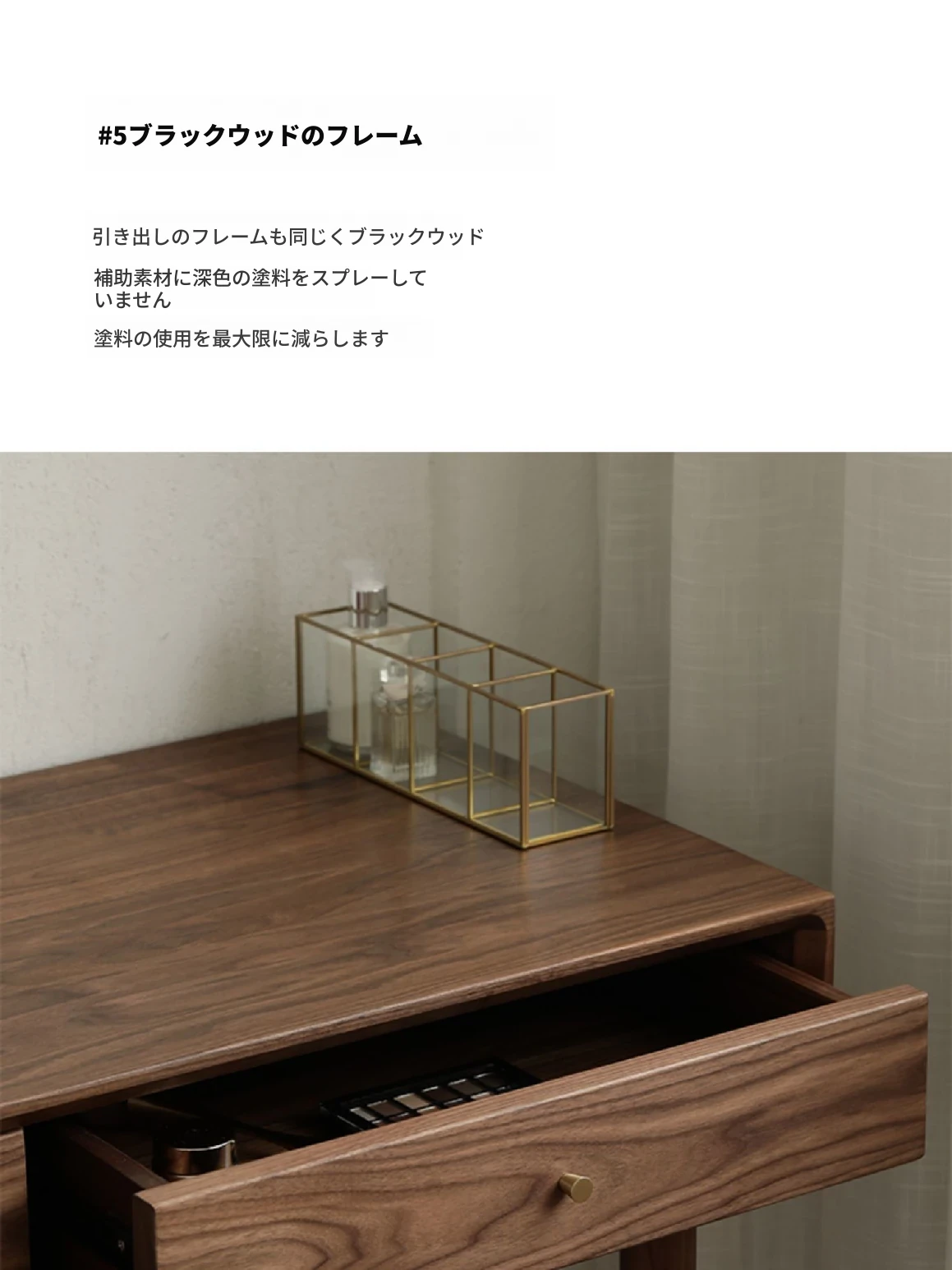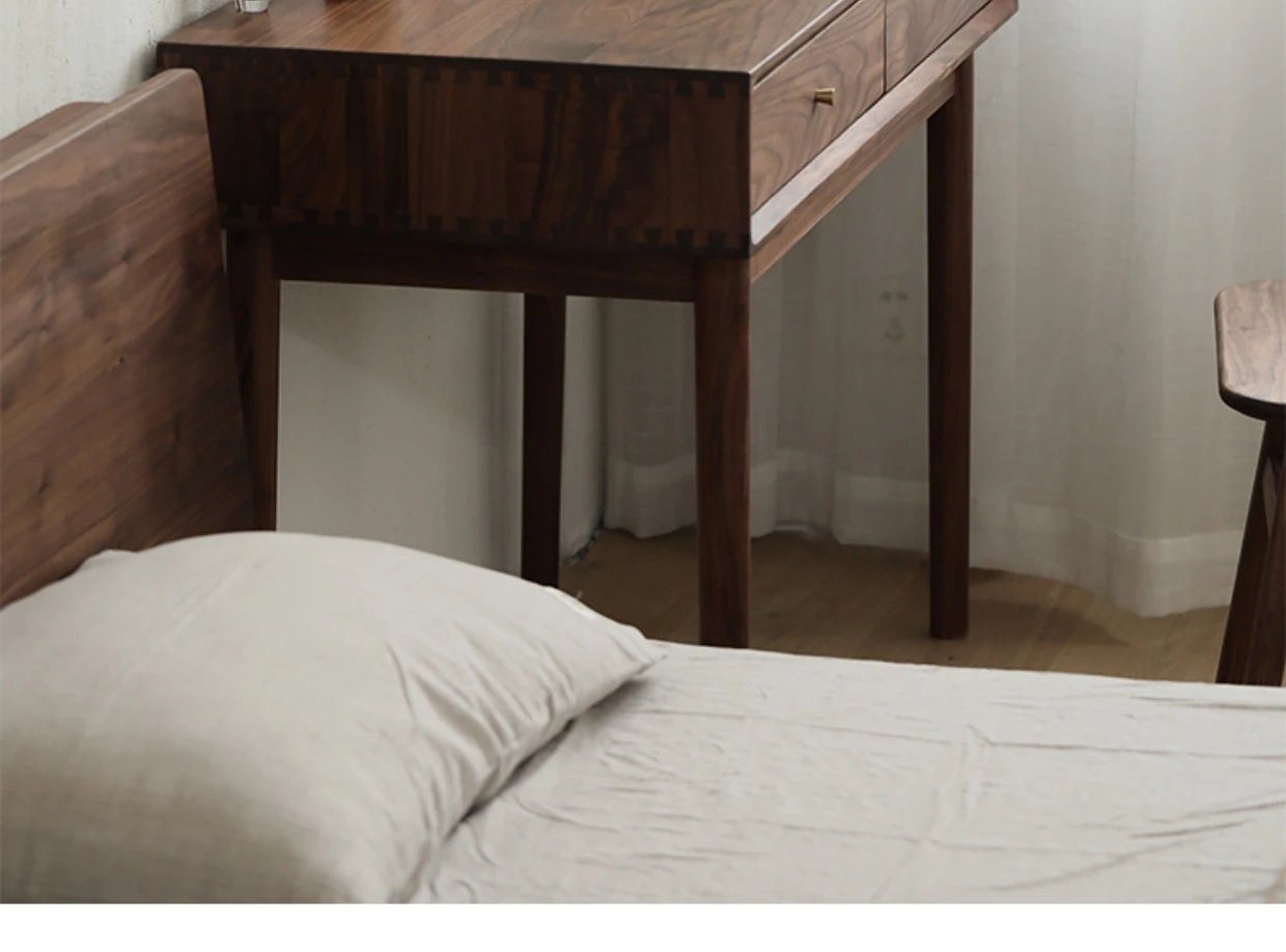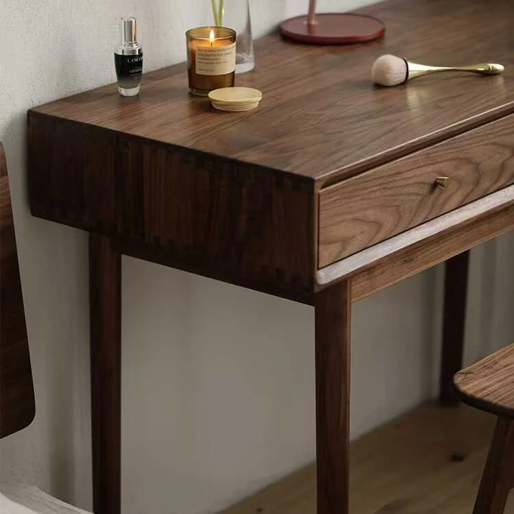 妙梵「メイクアップテーブル」北米産ブラックウォールナット製の実木ドレッサー シンプルでおしゃれな小型ベッドルーム用メイクデスク【収納力抜群】