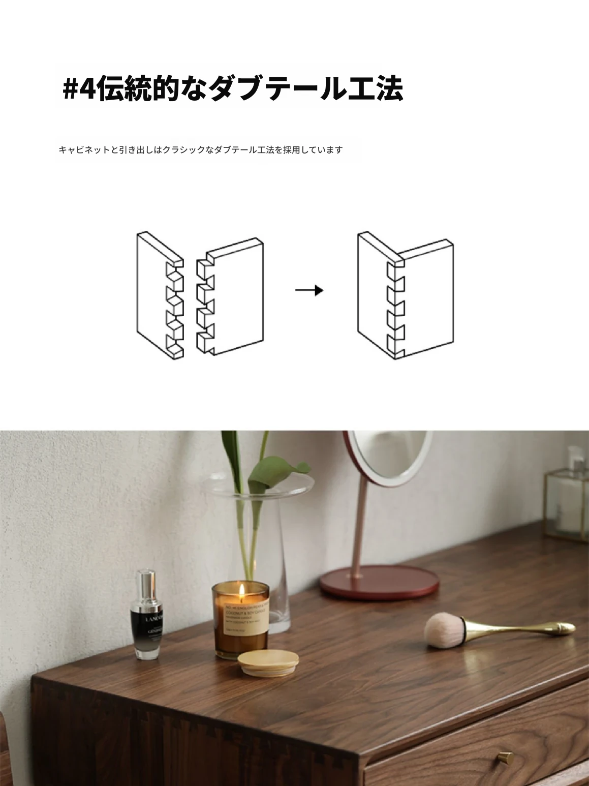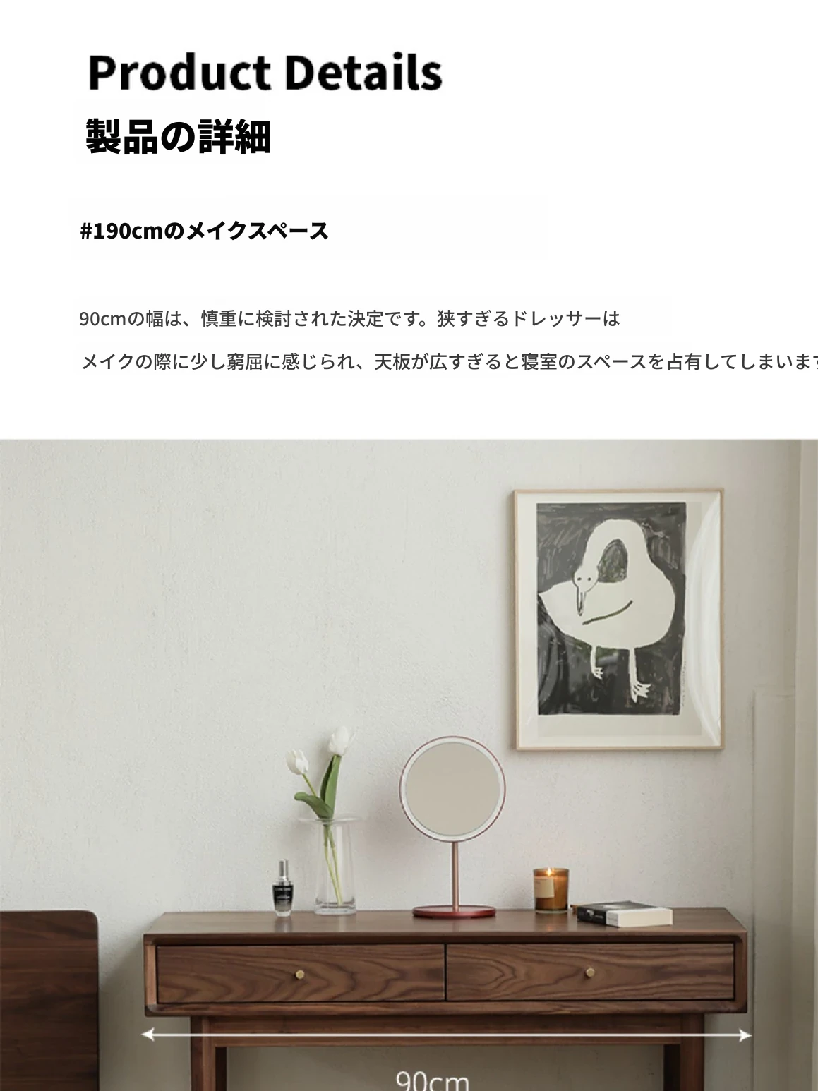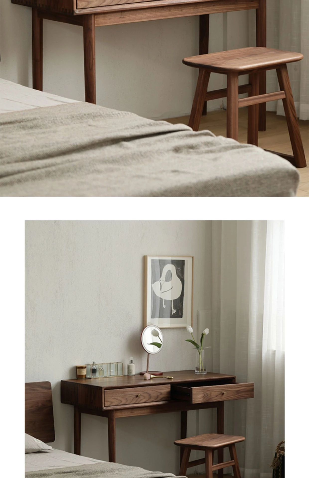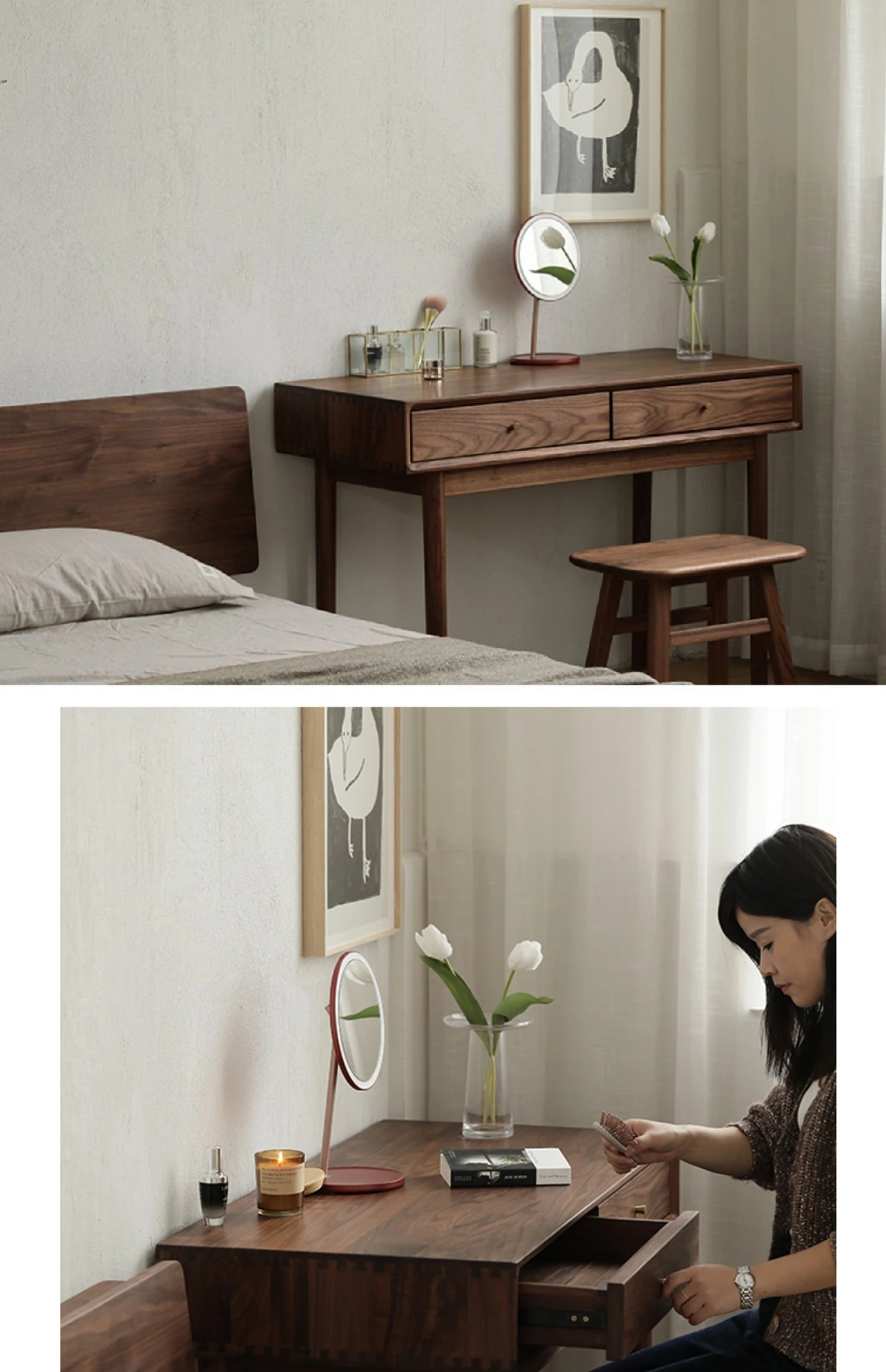 妙梵「メイクアップテーブル」北米産ブラックウォールナット製の実木ドレッサー シンプルでおしゃれな小型ベッドルーム用メイクデスク【収納力抜群】