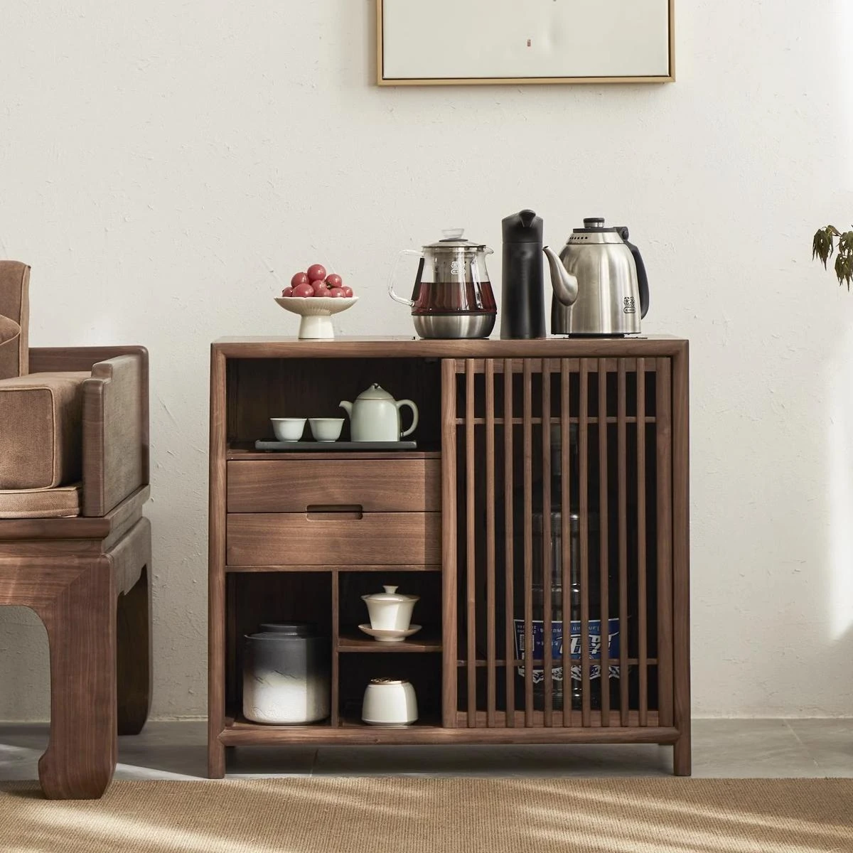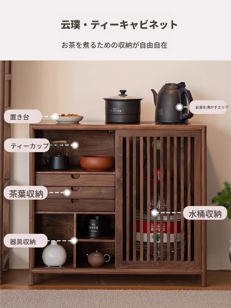 妙梵「碧螺春坞」北米産ブラックウォールナット製ティーサイドキャビネット - おしゃれなリビングにぴったりのティーセットと電気ケトル一体型、贅沢なひとときを演出します!