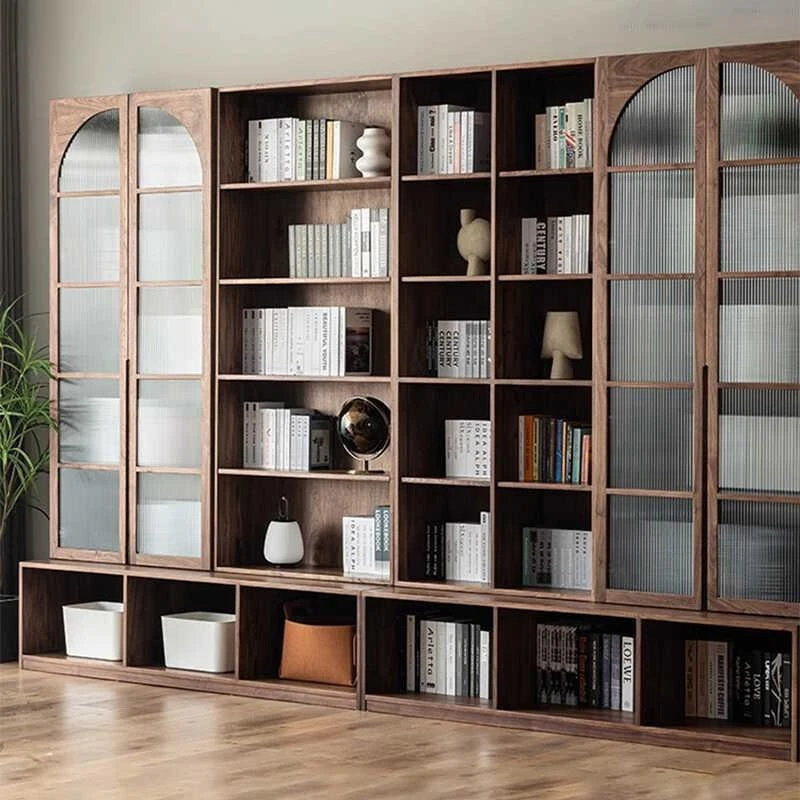 妙梵「時光の繭」北米産ブラックウォールナットの書棚コンビネーション!リビングにぴったりなスタイリッシュなフロア書架、ディスプレイキャビネット、収納棚。高級感溢れるデザインで、あなたの空間を格別に演出します!
