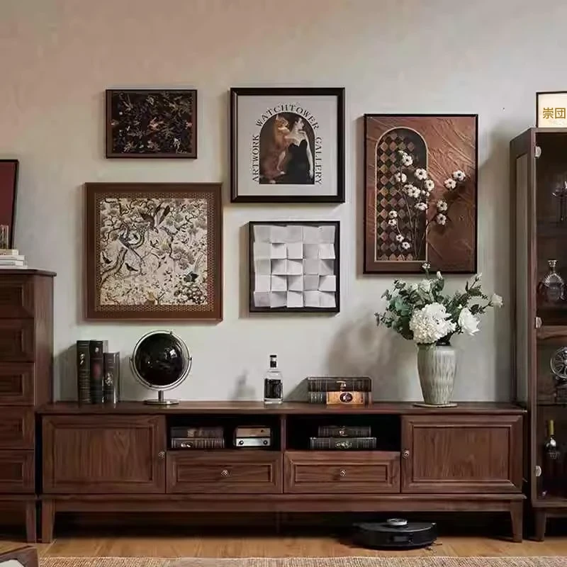 妙梵「翠影橱」北米ブラックウォールナット製テレビサイドキャビネット - スタイリッシュなデザインで収納力抜群!リビングを華やかに演出するフロアキャビネット。おしゃれで実用的な収納を手に入れましょう!