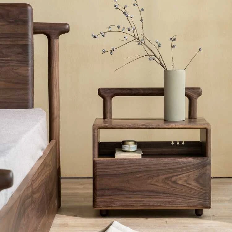 妙梵「星河夢」北米ブラックウォールナット製ナイトテーブル - 和の美を感じる無垢材のベッドサイドキャビネットで、あなたの寝室を特別な空間に演出します。