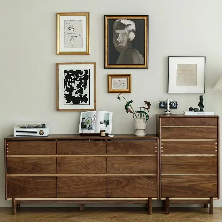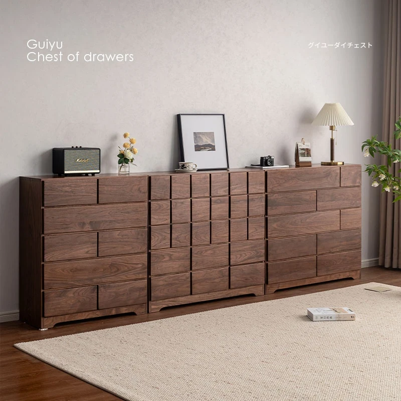 妙梵「千嶂影」北米黒胡桃無垢材のチェスト、寝室のベッドサイド収納に最適!スタイリッシュなデザインがリビングにもぴったり。豊富な収納力で、生活空間をすっきり整理整頓。