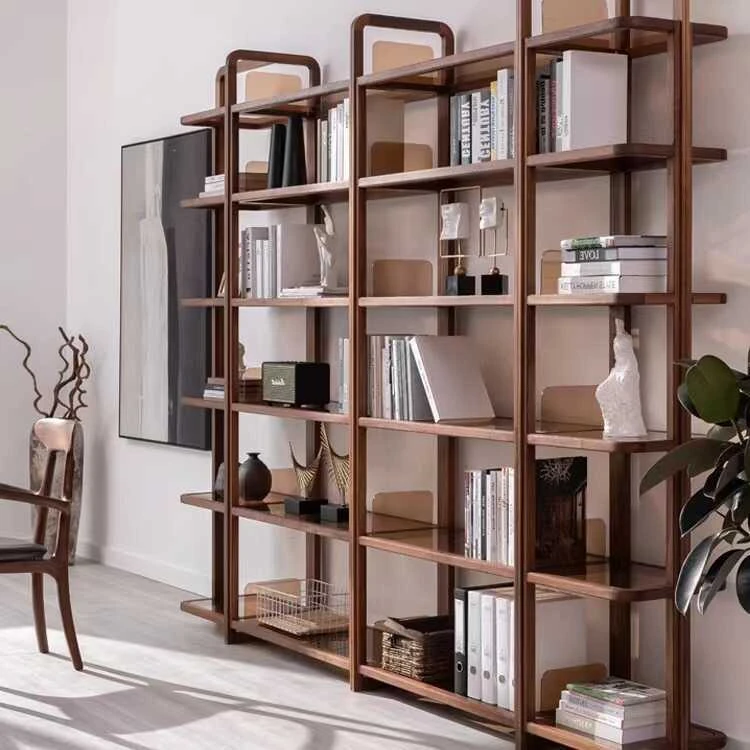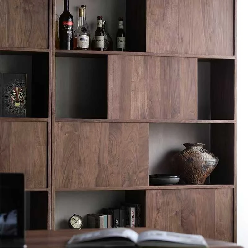 妙梵「墨韵集萃阁」北米産ブラックウォールナット製の書棚・ディスプレイラック - 北欧デザインのスタイリッシュな間仕切り収納で、洗練された空間を演出!