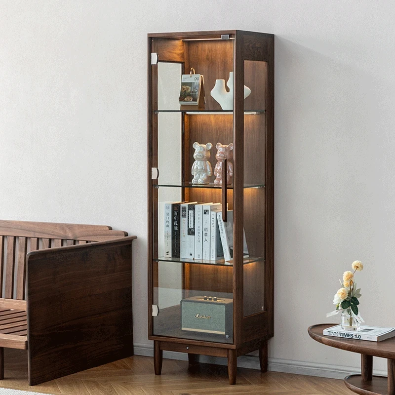ミャオファン「光影ワインキャビネット」北米産ブラックウォールナット製のモダンシンプルガラスドア付きリビング展示キャビネット。高級感溢れるデザインで、あなたの空間を華やかに演出します!