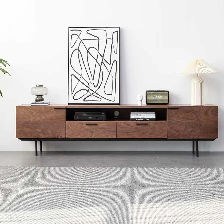 妙梵「韵启视」北米ブラックウォールナットテレビボード - モダンな小型住宅にぴったりのインダストリアルスタイルのアイアン製テレビキャビネットで、洗練されたデザインが空間を引き立てます。