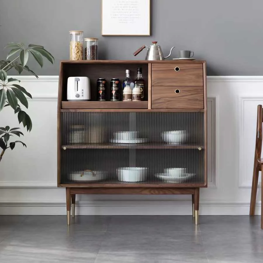 妙梵「碧茶悠」北米産ブラックウォールナット製ダイニングサイドボード - 家庭用、収納力抜群のマルチ機能ティーキャビネットで、優雅な食卓を演出します!