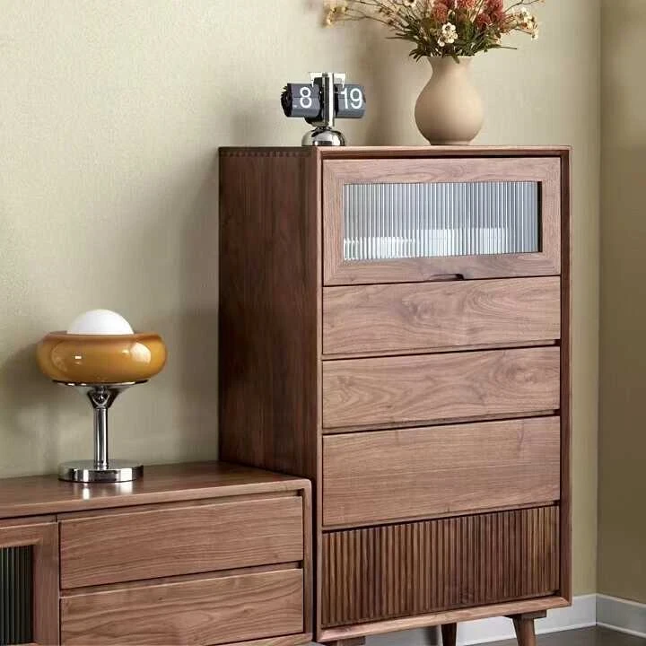 妙梵「晴窓映翠」北米産ブラックウォールナット製5段チェスト リビングルームテレビサイドキャビネット 寝室収納棚 - 高級感あふれるデザインで、お部屋を美しく彩ります!