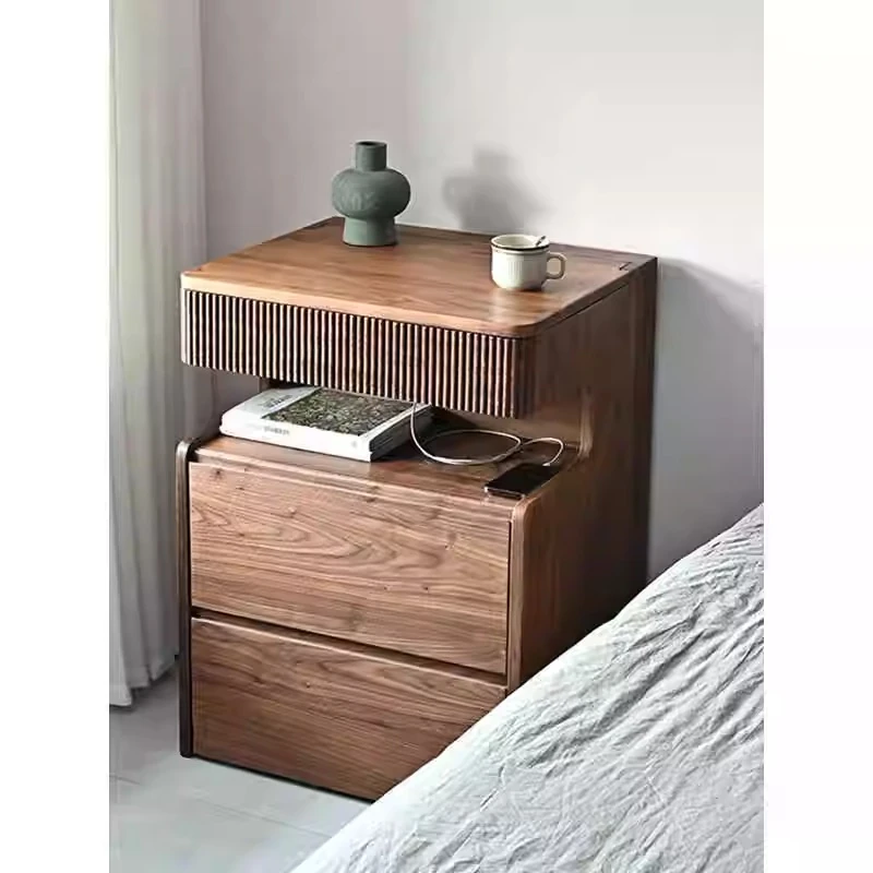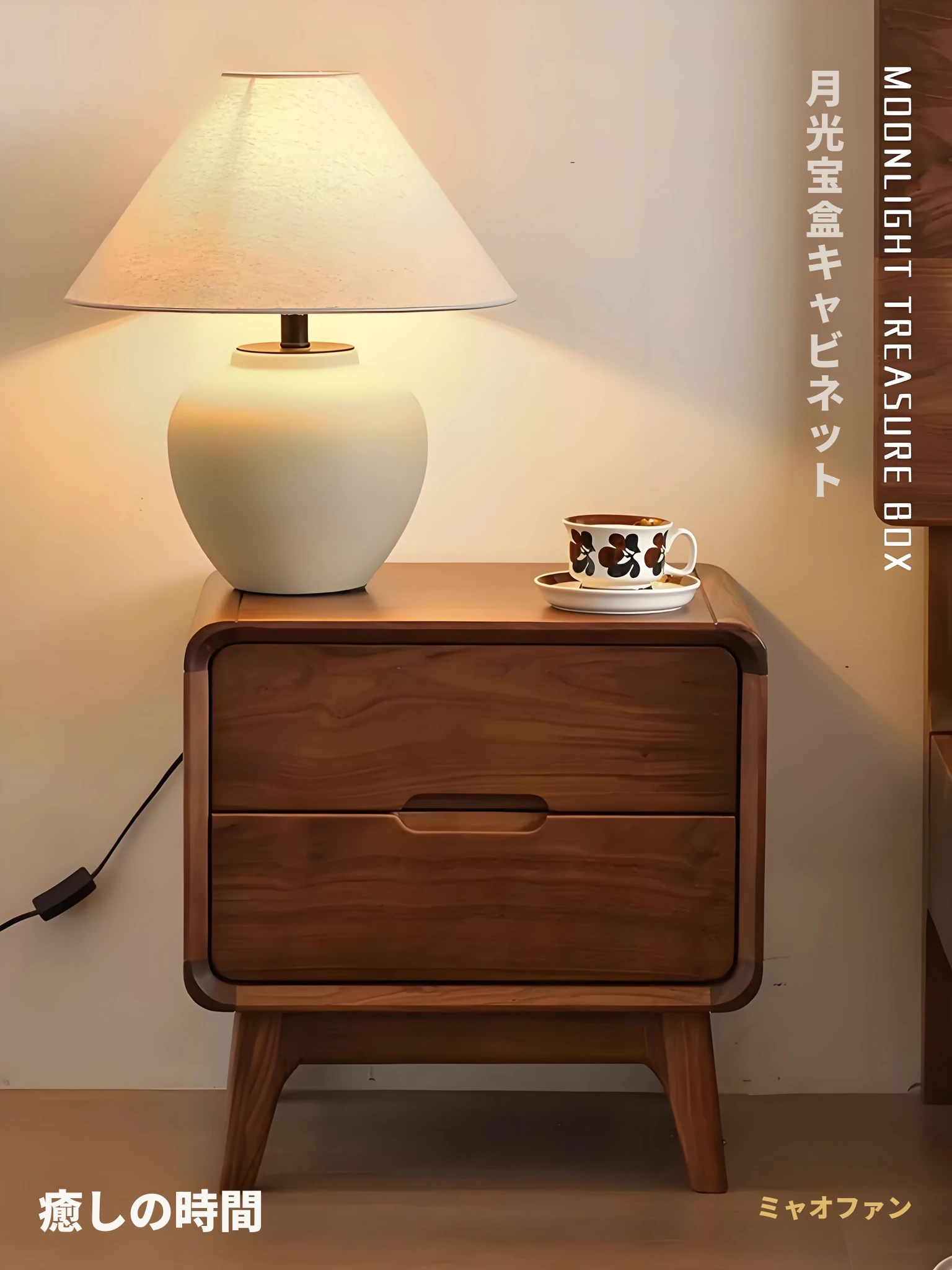 妙梵「月光宝盒」北米産ブラックウォールナット無垢材使用!2025年新作、コンパクトでスタイリッシュなベッドサイドテーブル。おしゃれな寝室にぴったりのシンプルデザインで、機能性も抜群!