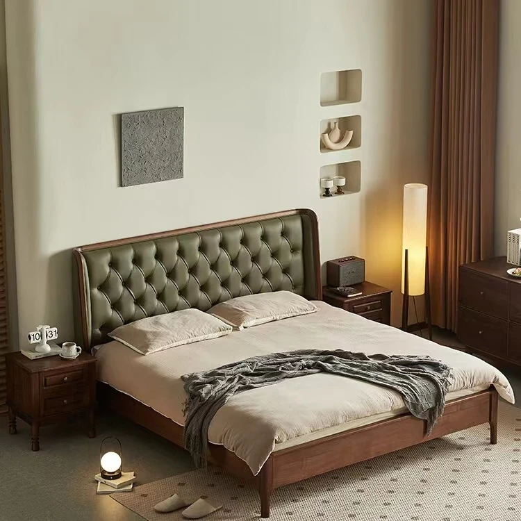妙梵「夢を織るソフトパッケージベッド」本格的な天然木製、リアルレザーのソフトパッケージベッド。シンプルで洗練された北米産ブラックウォールナットのダブルベッドで、極上の寝心地を体験してください。