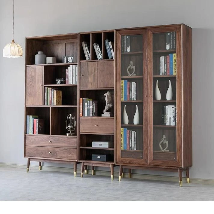妙梵「灵犀書驿」北米産ブラックウォールナットの書棚 – 家庭やオフィスに最適な収納と展示を兼ね備えた美しい書架!高級感あふれるデザインで、あなたの本を魅力的に演出します。