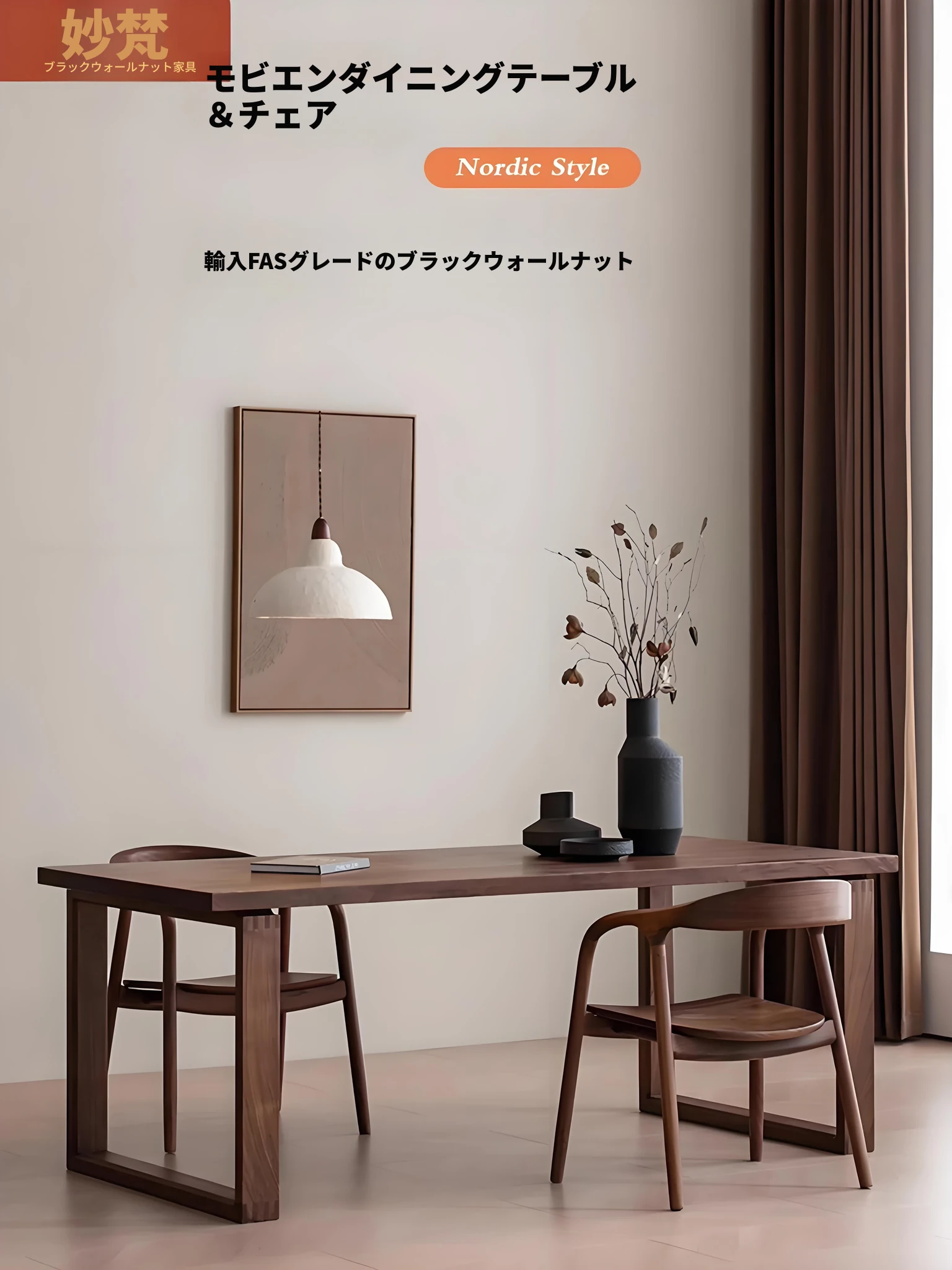 妙梵「雅宴テーブル」北米産ブラックウォルナット無垢材使用のダイニングテーブル - 自然の美しさを引き立てるイタリアンミニマリズムの書斎デスク!