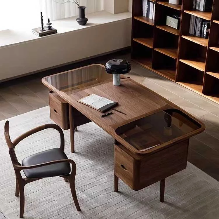 妙梵「沐風洲」北米黒胡桃の木製ライティングデスク - イタリアンラグジュアリーの無垢材大板デスク、書斎やオフィスに最適!高級感あふれるデザインで、快適な作業空間を実現します。