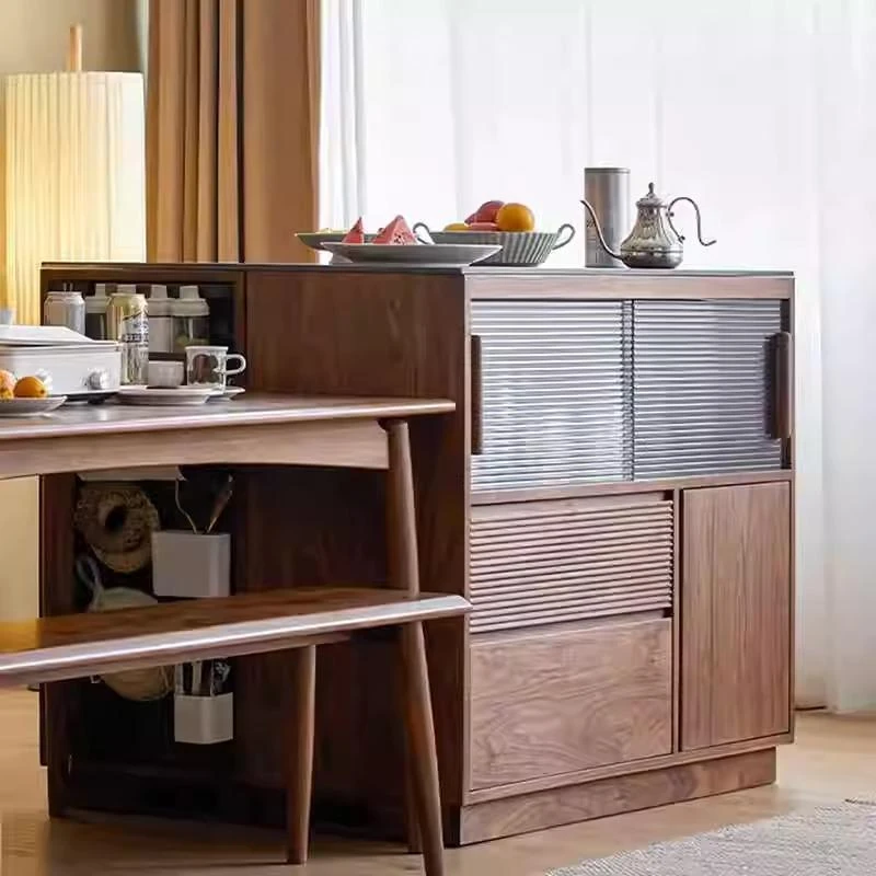 妙梵「膳宝厨」北米産ブラックウォールナットのモダンシンプルなダイニングサイドキャビネット - キッチン収納、ティーサービス、食器収納に最適!おしゃれで機能的なデザインで、あなたのキッチンをスタイリッシュに演出します。