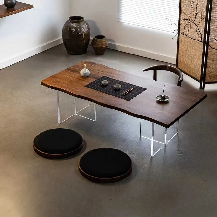 妙梵「茶語星台」北米産ブラックウォールナット無垢材使用の和風茶卓 - 畳スタイルでくつろぎの時間を演出する、洗練されたデザインのローテーブル。