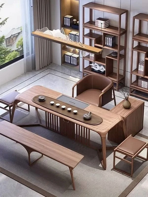 妙梵「ランジテーブル」北米産ブラックウォールナットの茶卓 新しい中式デザイン 現代的な茶室にぴったりの禅スタイルのティーテーブル